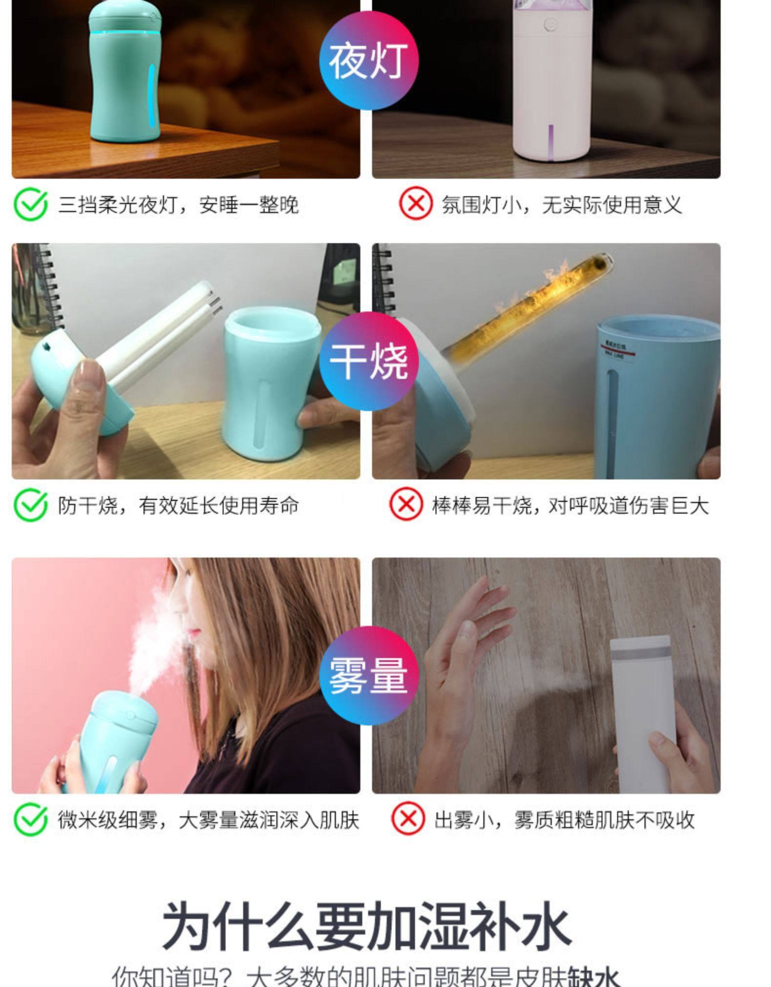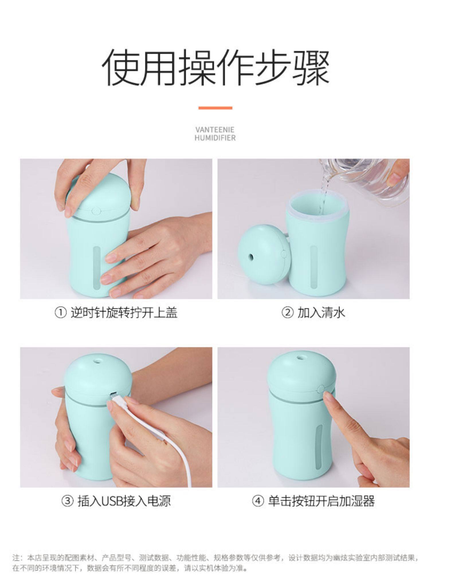 这时候的天气本来就比较干燥,特别是坐在电脑面前,收到后确实不错,跟水杯差不多大,而且喷的雾也多,真是太实用了