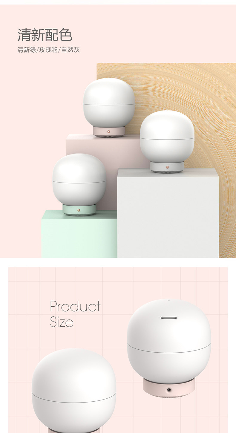 声音小。喷雾匀,静音省电,小小机子大智慧,小巧可爱,特别喜欢,推荐购买。
