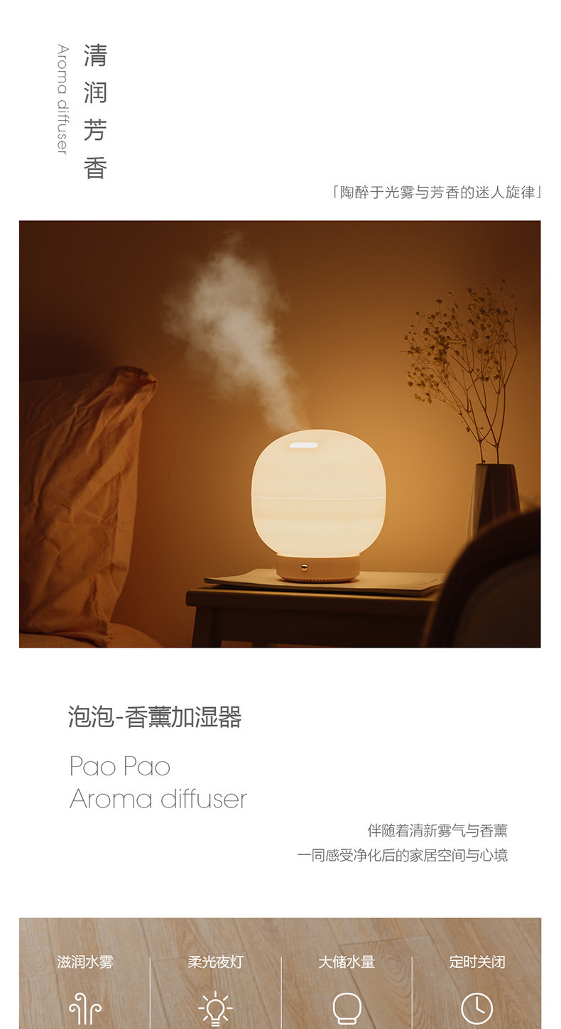 小巧玲珑功能好,质感好无异味,一秒出雾,雾量大细腻柔和,很舒服,放点香薰,效果更好