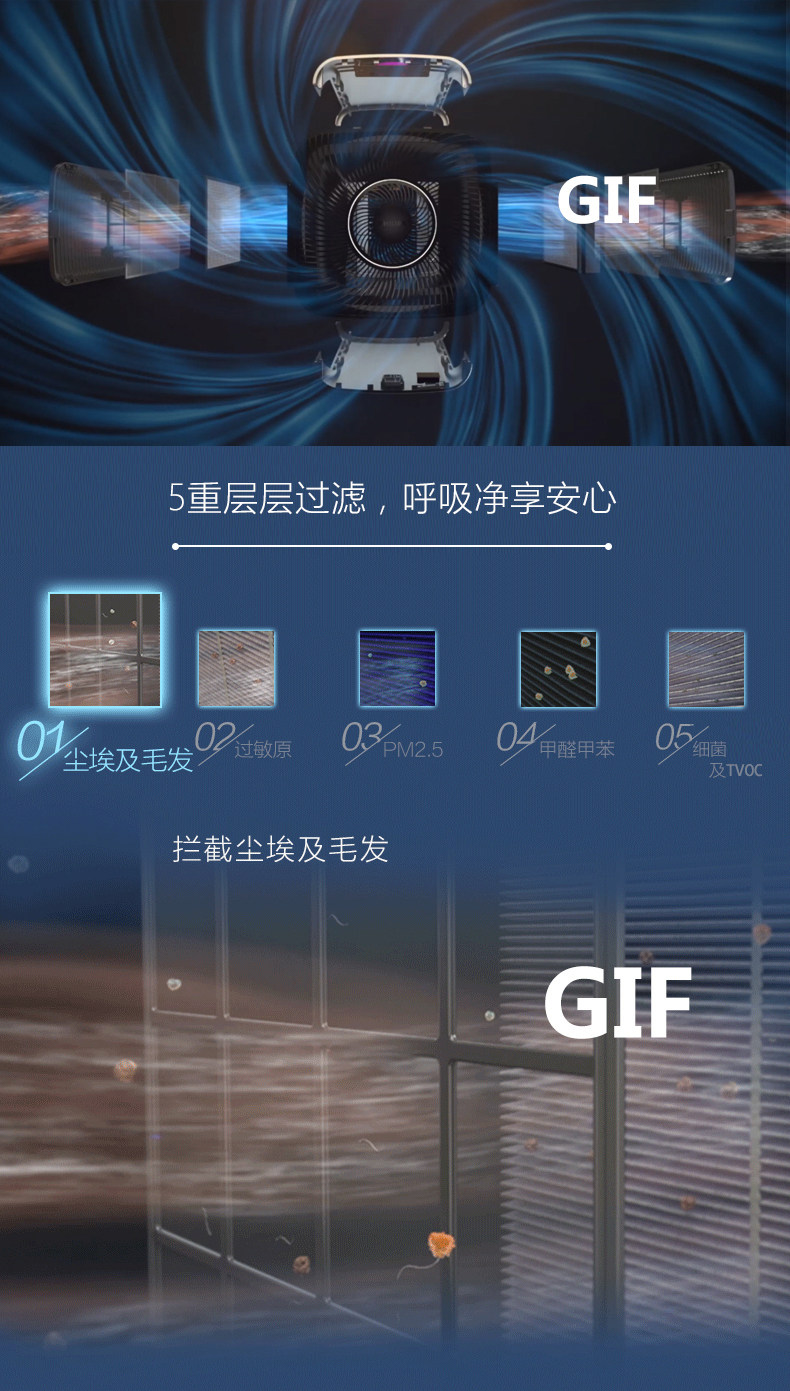 • 功能:定时除花粉除甲醛除烟除尘