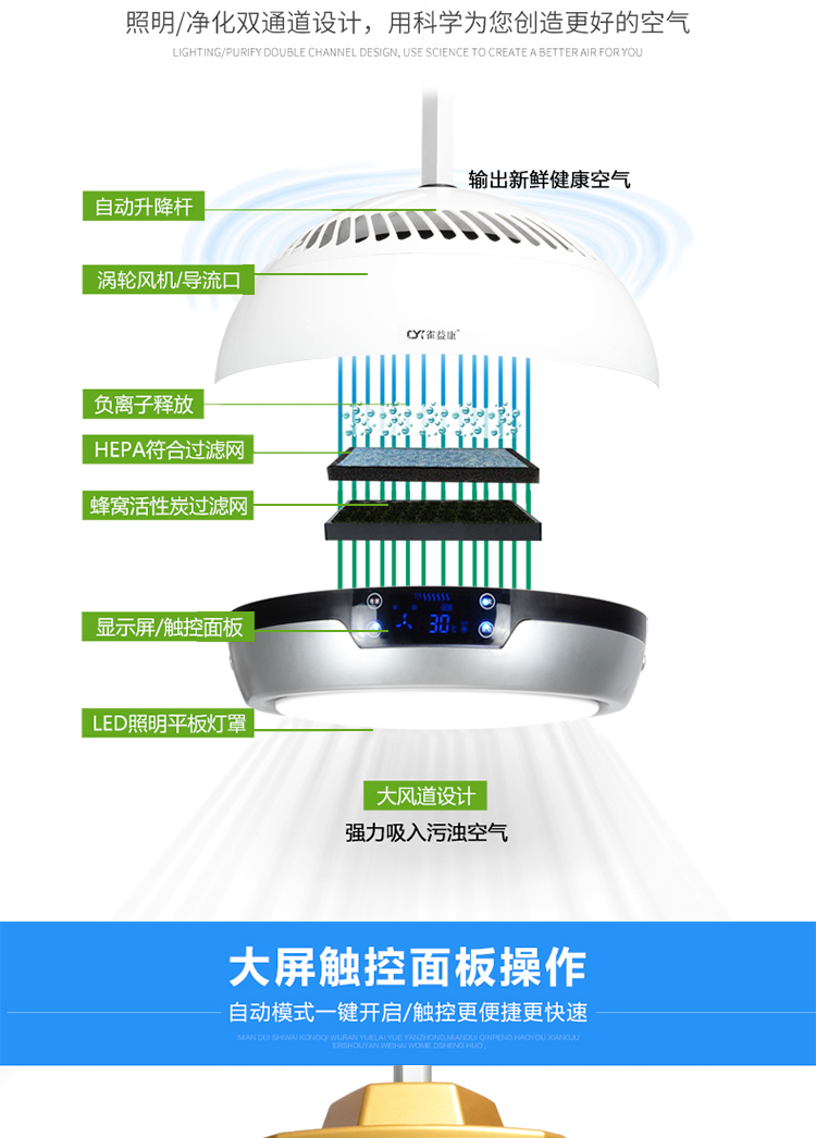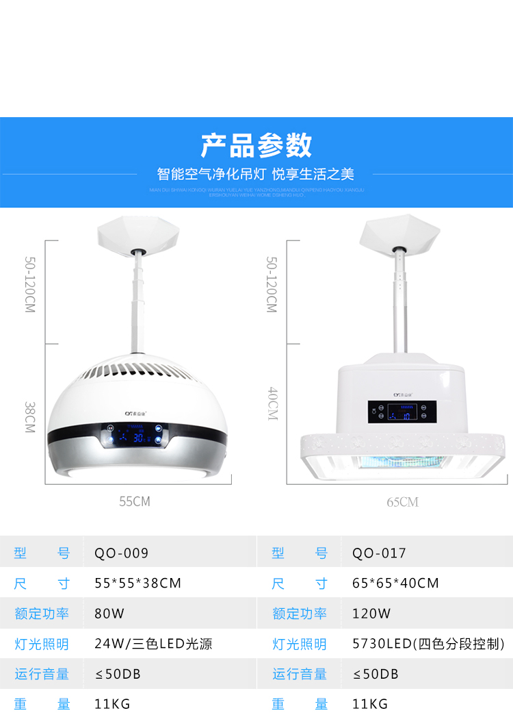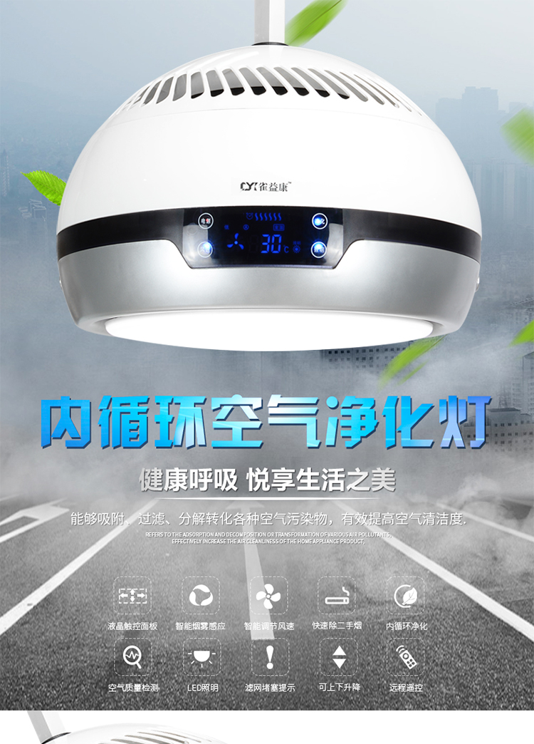 棋牌室空气净化器灯 麻将馆吸烟升降台球桌球吊灯餐厅负离子led灯