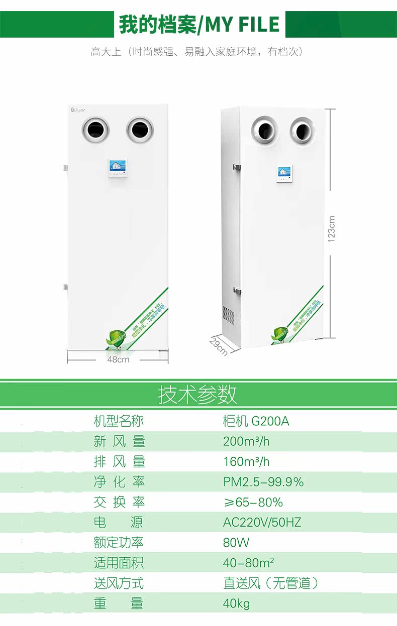 新风梦柜式室内空气净化器家用换气机除雾霾PM2.5新风系统G200-A