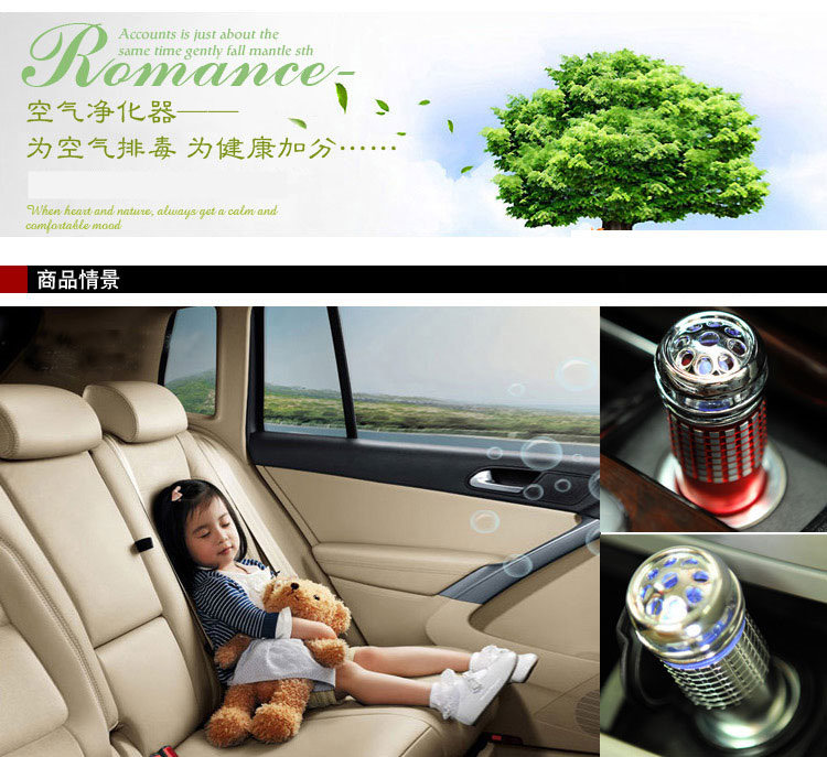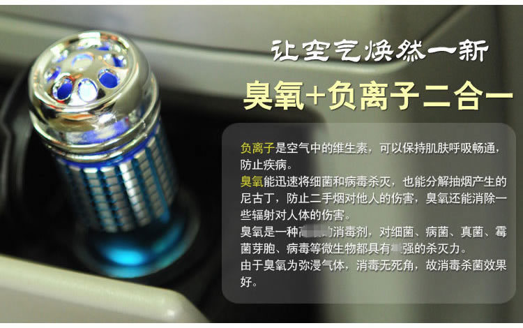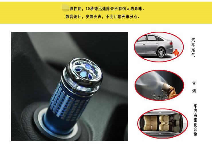 在车内坐的时间过长,车内空气不流通、不够清新,会让人身体产生不适,抵抗力下降,疾病就会趁虚而入。通电时上部会有小灯指示工作状态,并为车内营造迷人氛围。轻巧造型,更小的迷你尺寸,使用更方便。采用负离子技术,制造活性氧分子,臭氧可有效减少空调病,创造一片纯净、清新的车内环境,负离子是空气中的维生素,,可以保持肌肤呼吸畅通,防止疾病。