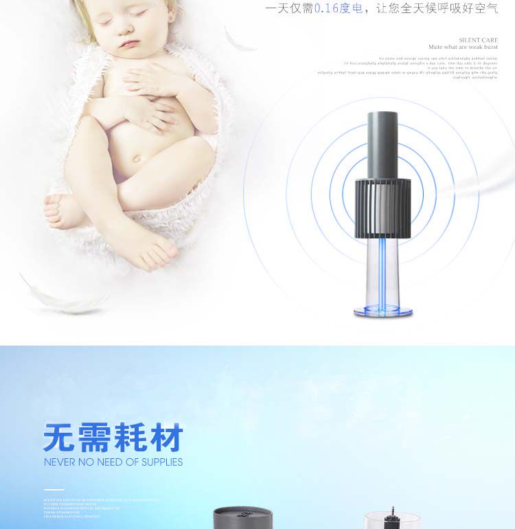 主动式吸附的空气净化器没有再使用噪音源——风扇,所以不会产生噪音,即使在安静的夜晚开着空气净化器也不会影响到睡眠。