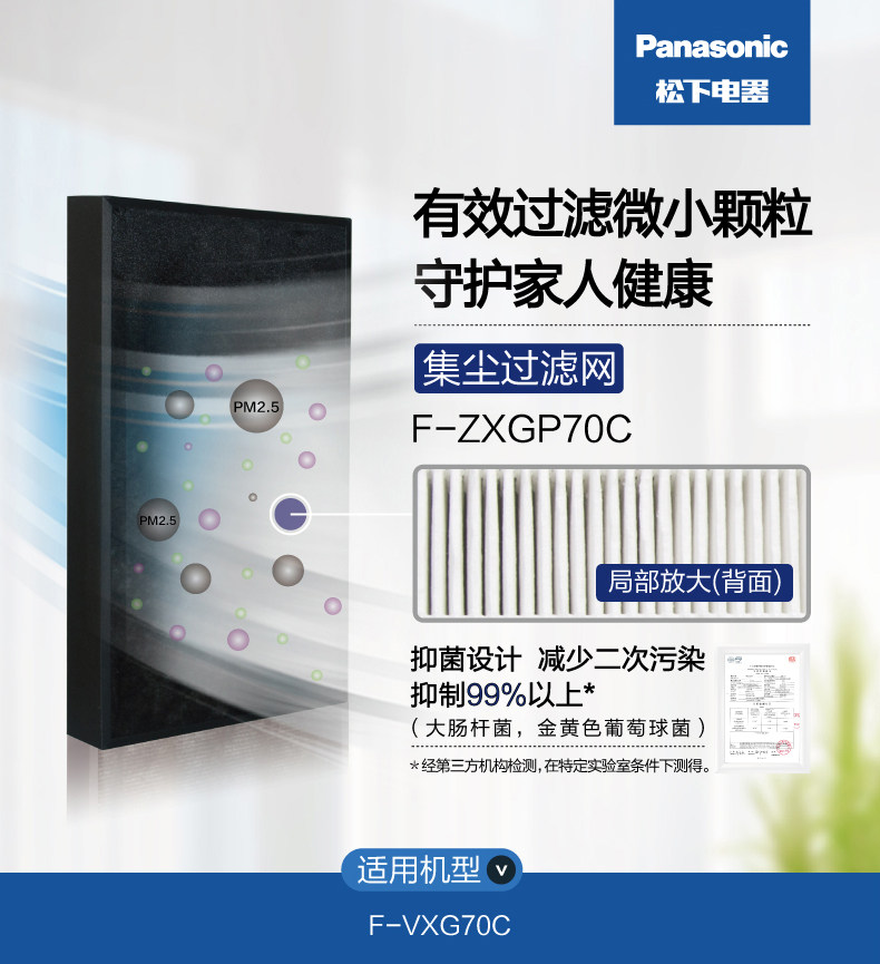 松下空气净化器F-VXG70C集尘过滤网 F-ZXGP70C 除尘网 全新