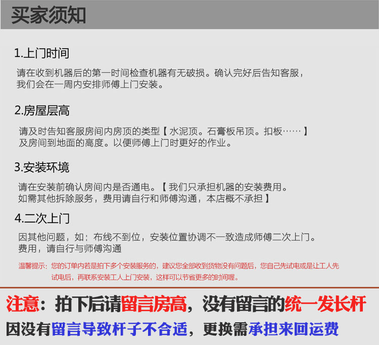 各位亲的层高若在标杆(2.6米-3.2米)层高以外,麻烦确认好层高尺寸并留言,以免来回换杆子,谢谢!