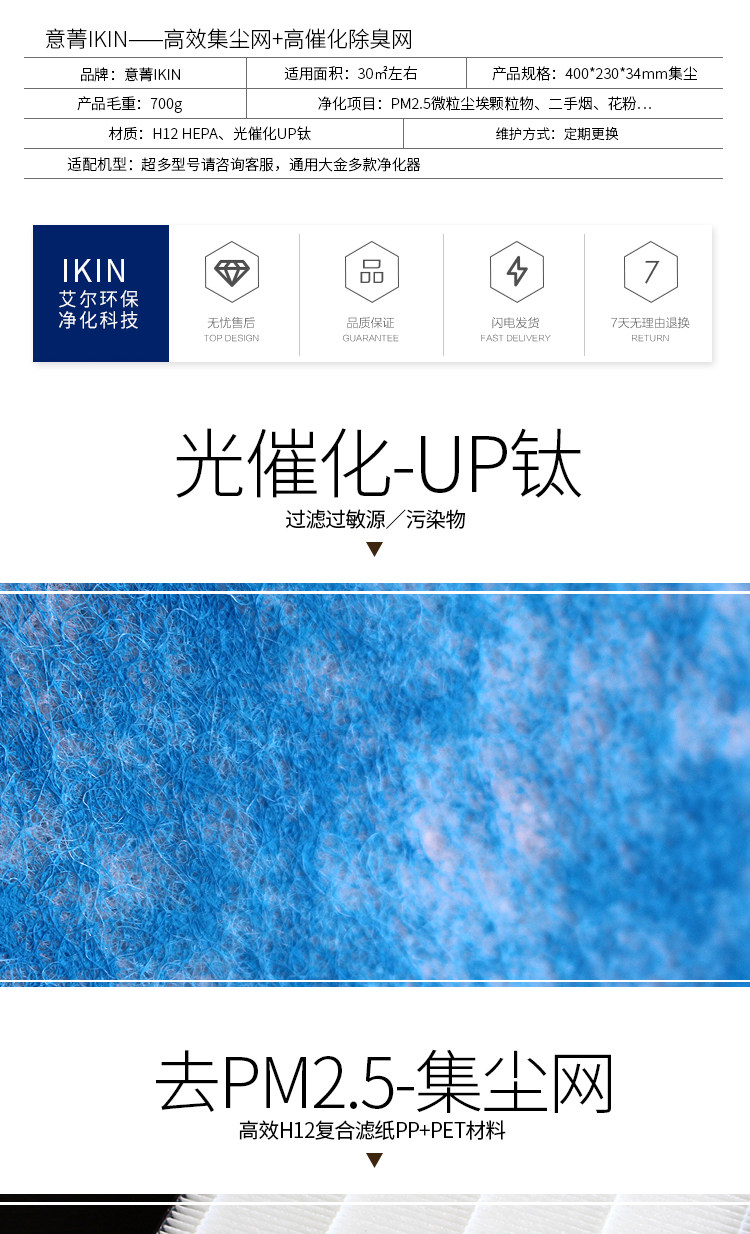 [上海兰熙空气净化设备厂净化,加湿抽湿机配件]适配大金空气净化器HEPA过滤网MC月销量1件仅售138元