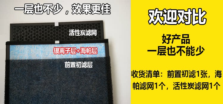 滤网和机器自带一样的,黑色初虑,hepa滤网,活性炭滤网,和机器自带滤网不一样或者效果没有原装的好,无理由退货退款
