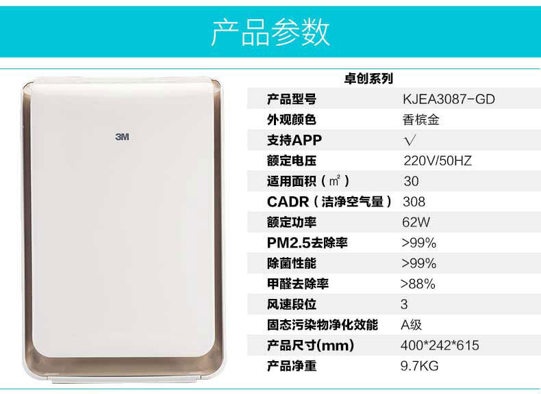 [纯臻净水空气净化,氧吧]3M智能空气净化器KJEA3087-月销量0件仅售1788元