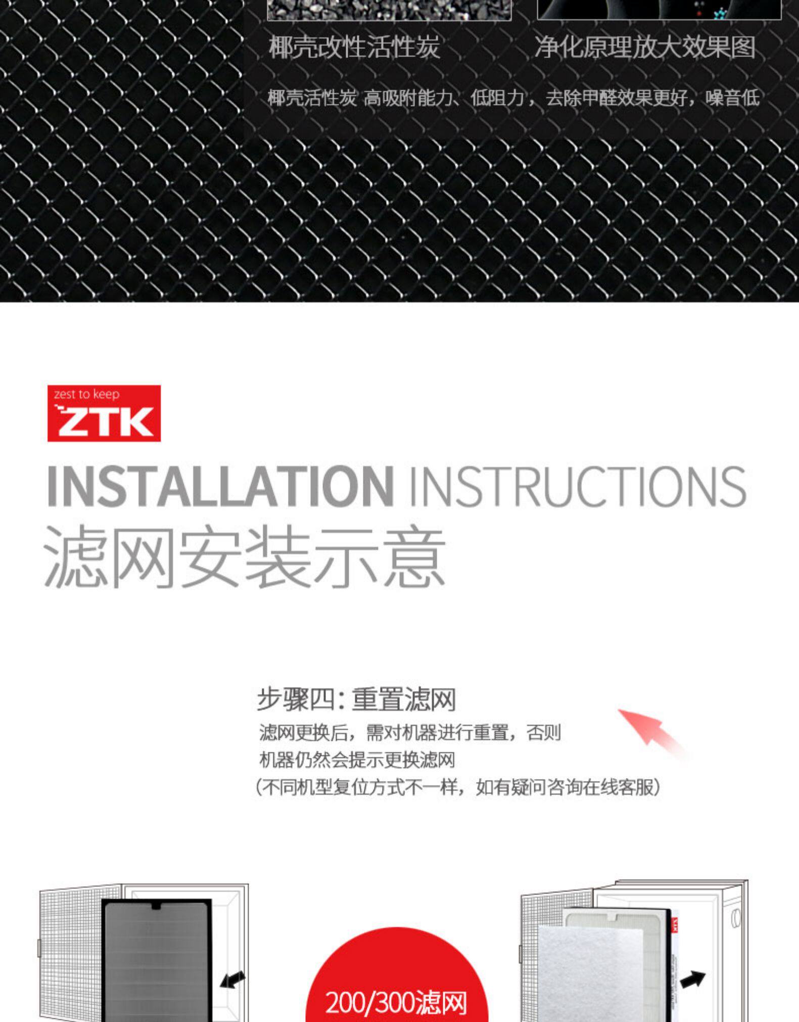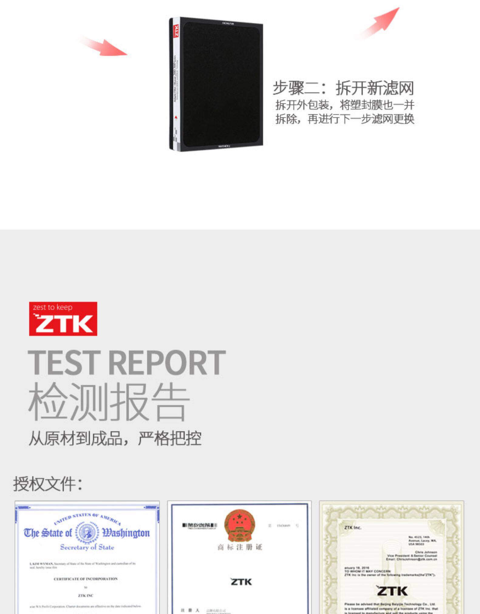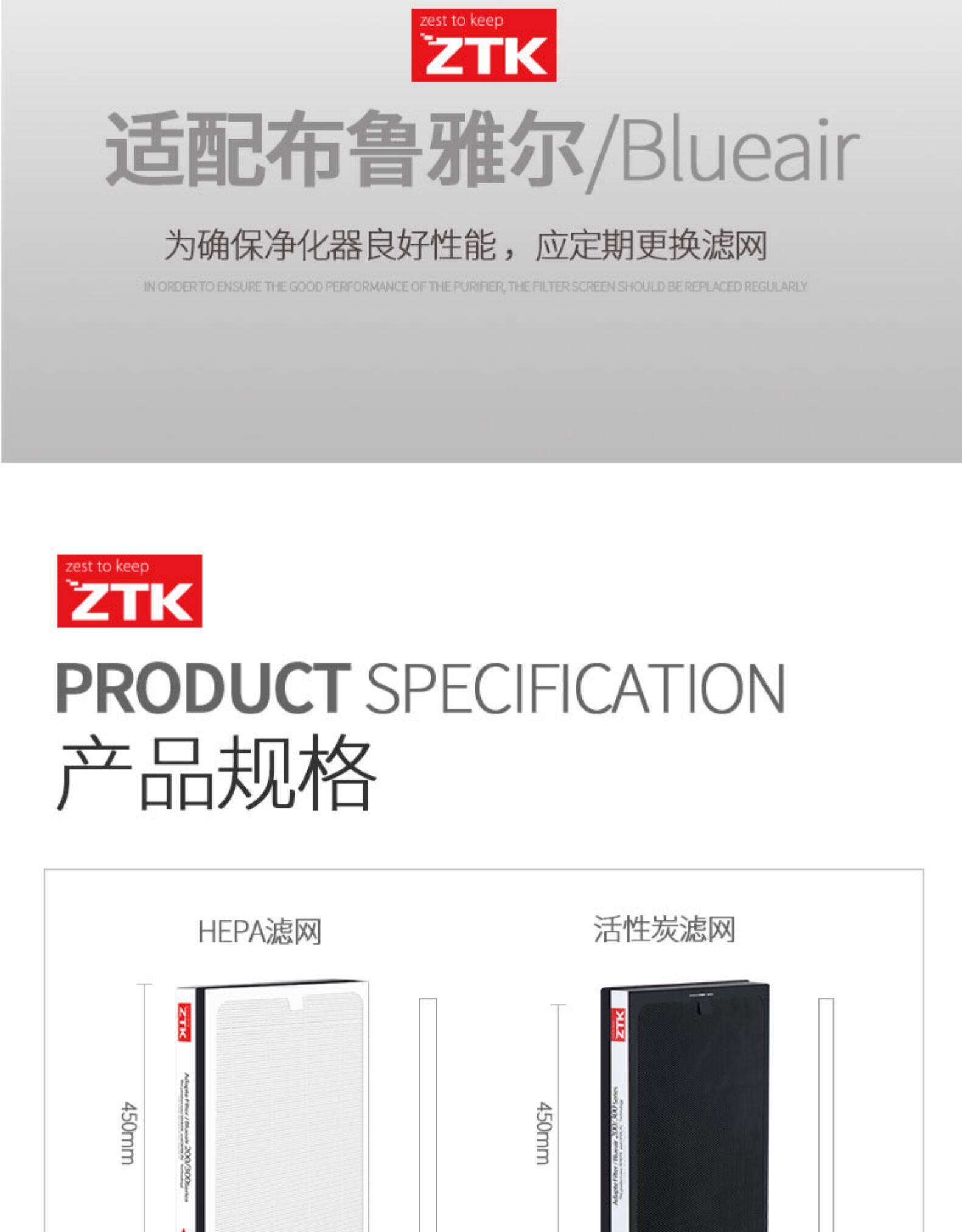 这次打算原装的和适配的各买一套,看看有什么不同。 比较如下:1.包装:原装的是彩色包装,但很薄。ZTK品牌的是简约牛皮纸包装,硬度很高,很显档次。2.做工:ZTK简约,做工优良。细节处理的相当到位,这一点个人认为比原装的美观,做工精良。3.HEPA:原装的看着有滤纸有点厚,ZTK看着薄。细看ZTK的HEPA滤纸与原装的应该是一样的,只是ZTK打的胶线更密,折数比原装更多。这一点给ZTK点个赞。4.活性炭:目测没有区别出来差别,原装与ZTK炭做工都不错。ZTK还送了一张双效预过滤网,能有效延长滤网使用寿命,比较有用的一个赠品。从性价比来说,ZTK的表现不错,可以替代原装的。过几天买个表再测一下效果,应该不会有差距。