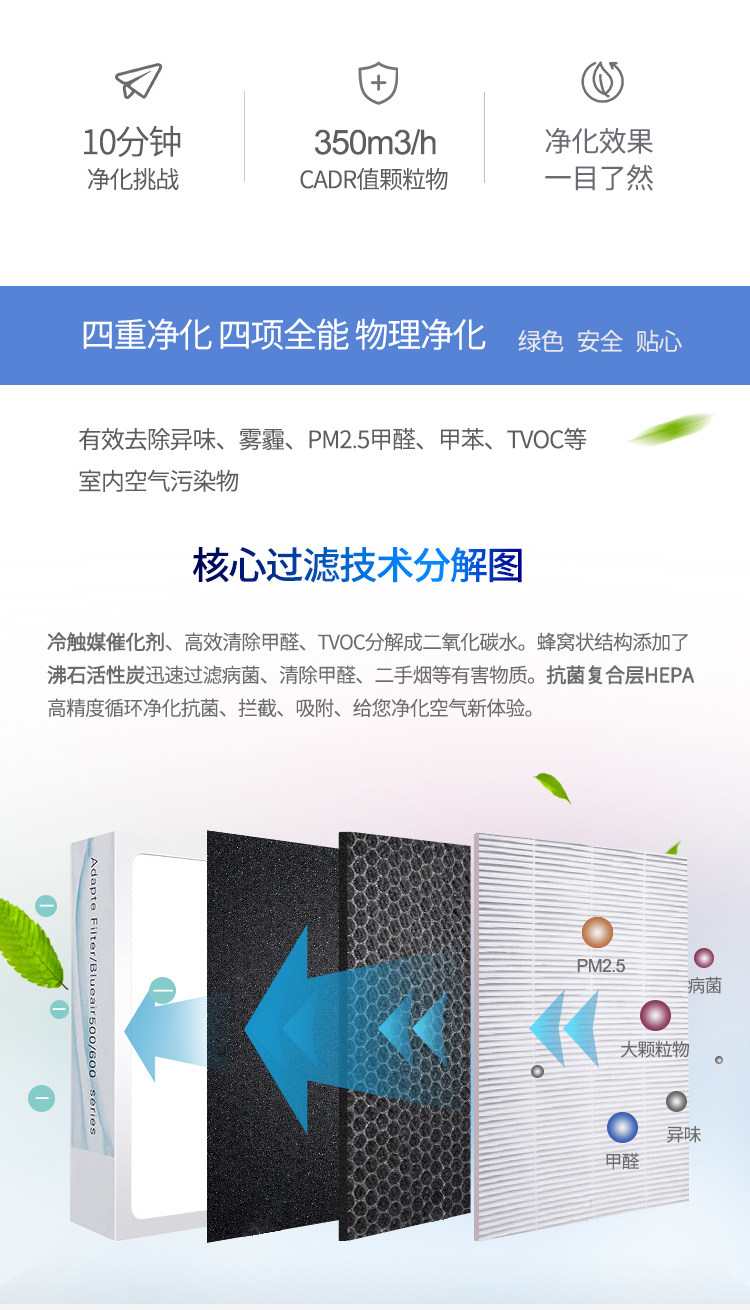 适配Blueair布鲁雅尔空气净化器403 401 450E 过滤网复合型滤芯