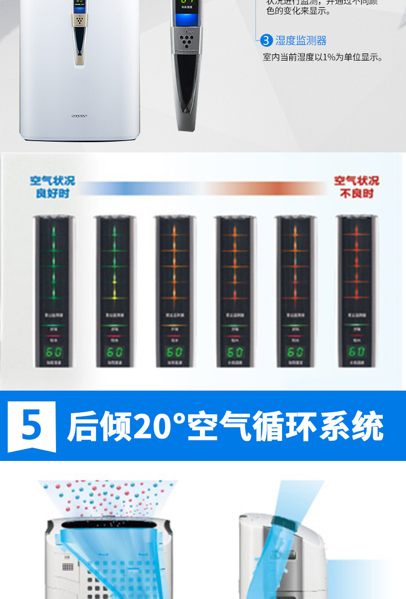 夏普空气净化器家用KC-W380S-W1除甲醛雾霾PM2.5二手烟加湿WB6