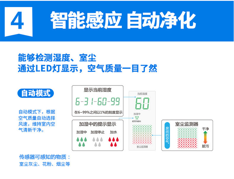 • 功能:除甲醛 除烟除尘 杀菌 加湿