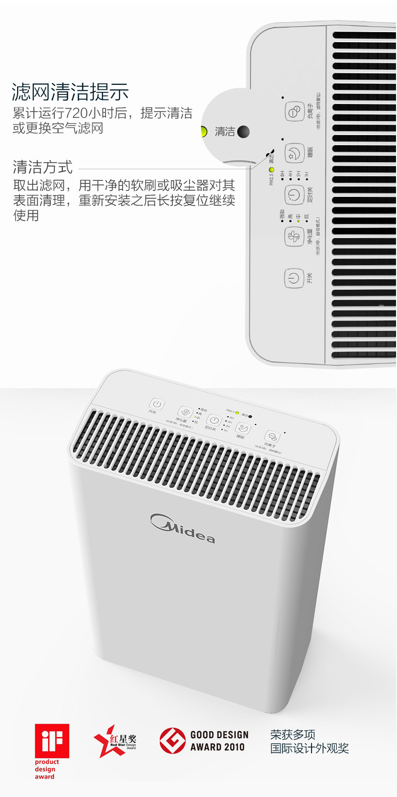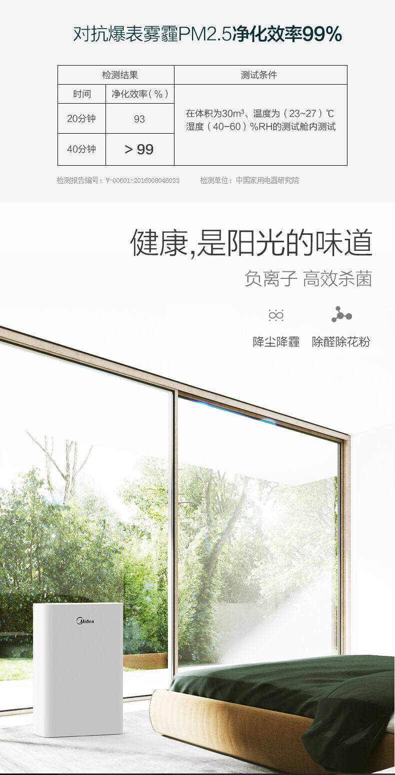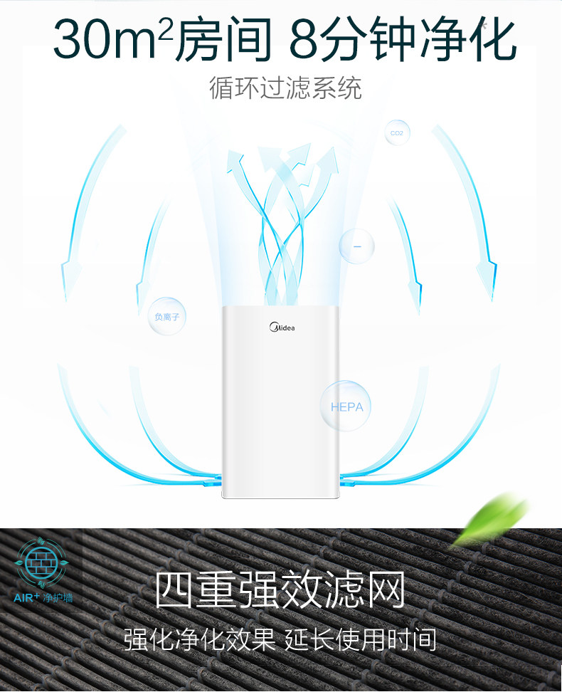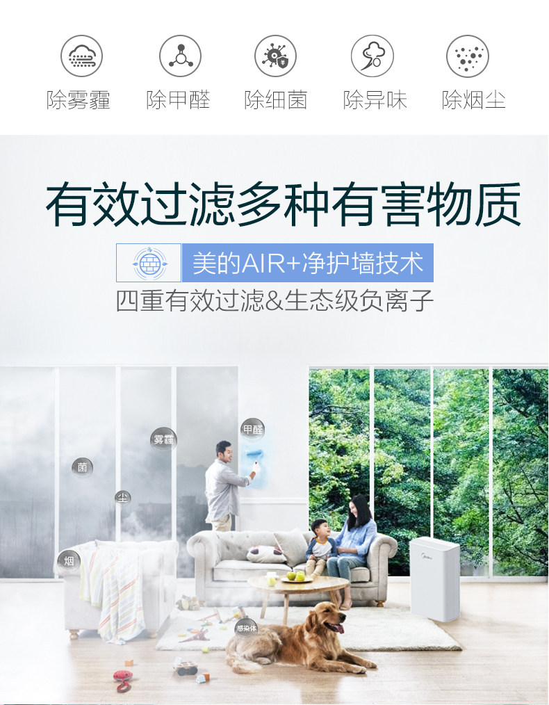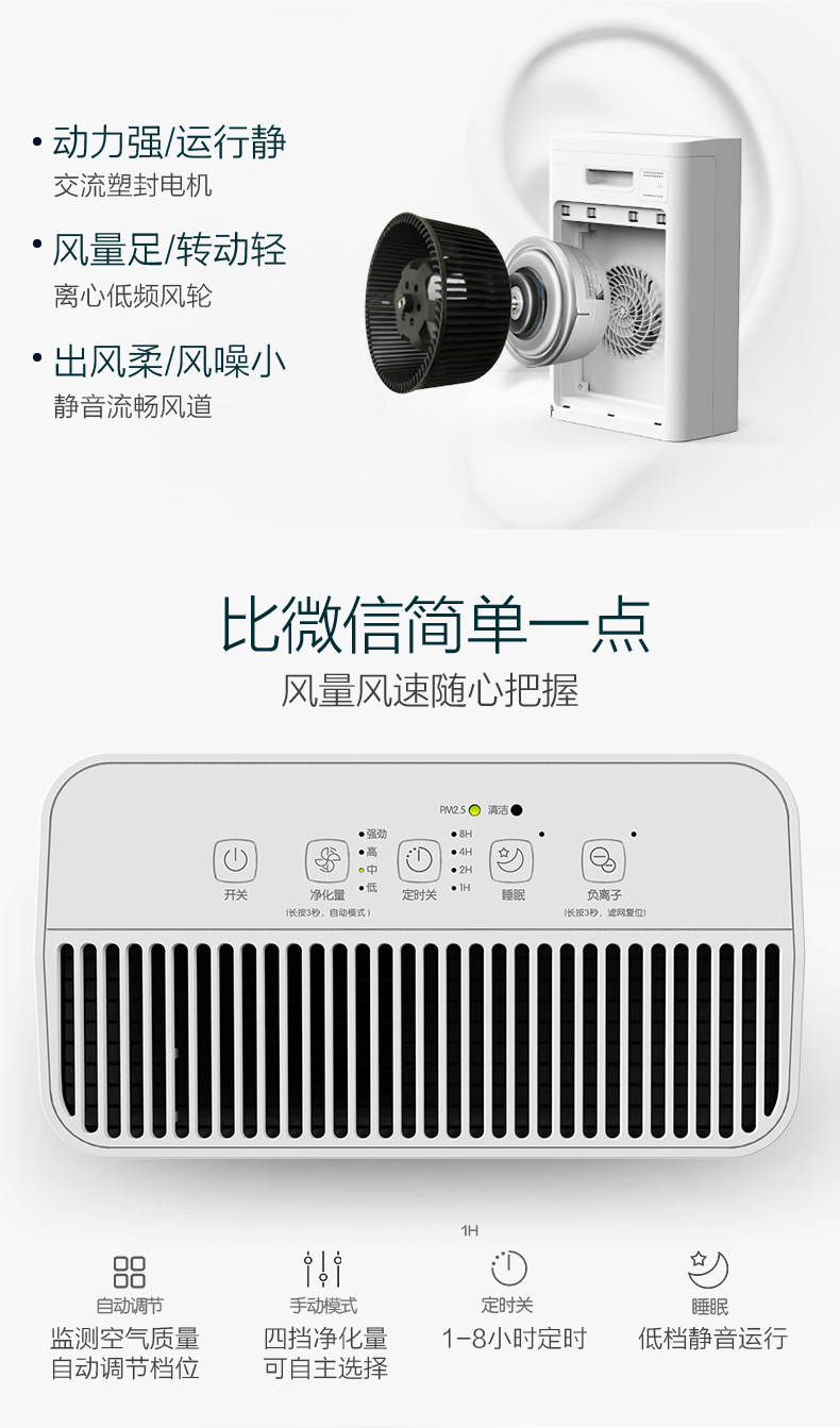 • 功能:定时除花粉除甲醛除烟除尘