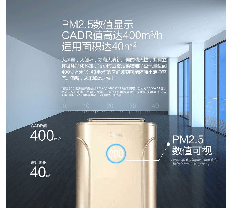 美的空气净化器KJ400G-E31家用快速除甲醛除烟尘杀菌负离子清新器