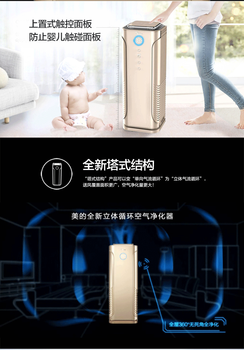 [美的电器直销店空气净化,氧吧]美的空气净化器KJ400G-E31家月销量0件仅售1999元