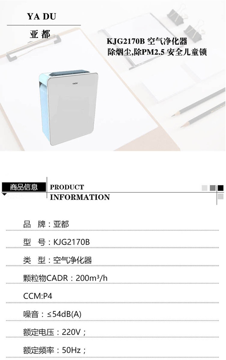 [亚都东方卫士专卖店空气净化,氧吧]亚都空气净化器KJG2170B家用办月销量0件仅售1599元