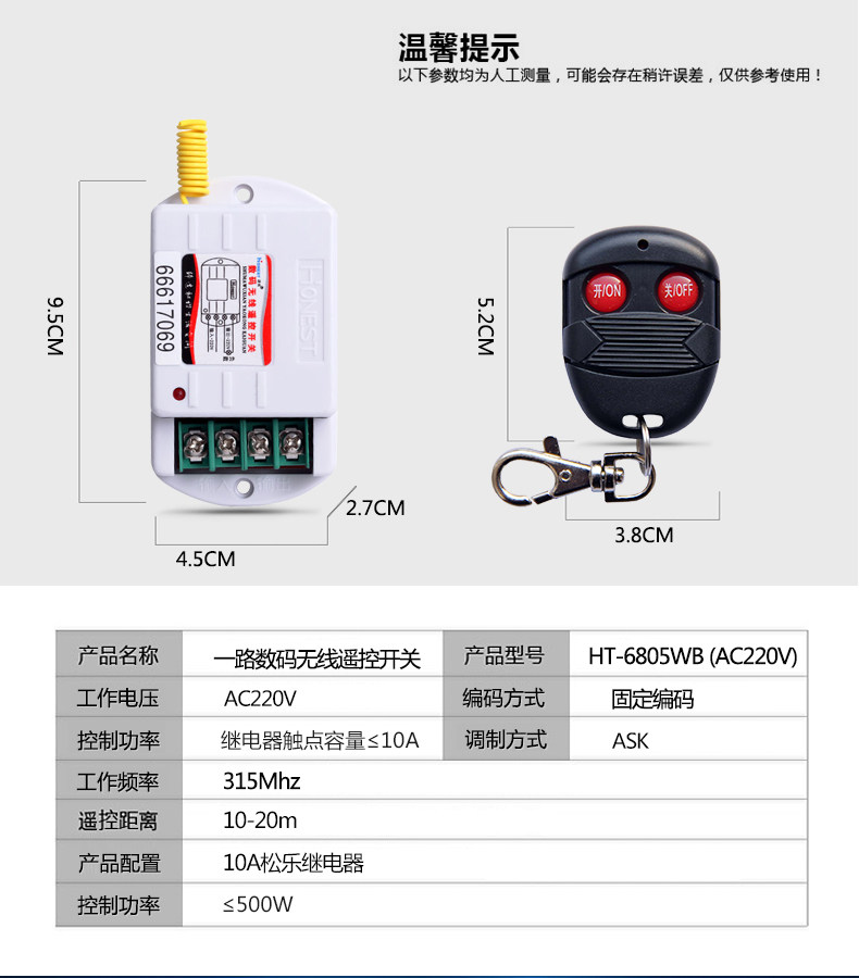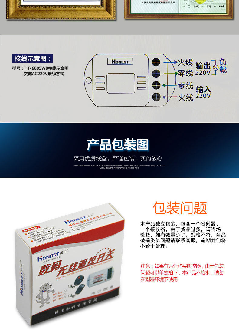 [环宇电子商城遥控开关]220V单路无线遥控开关远距离控制灯月销量3件仅售12元