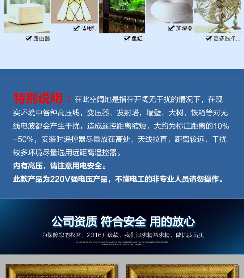 220V单路无线遥控开关远距离控制灯具路由器空气净化器等电器设备