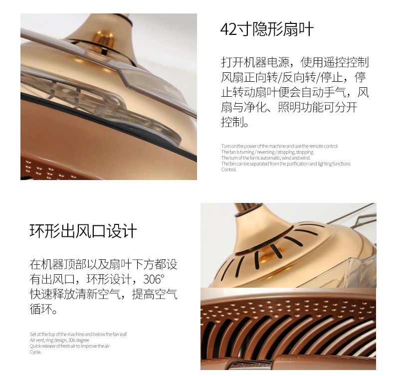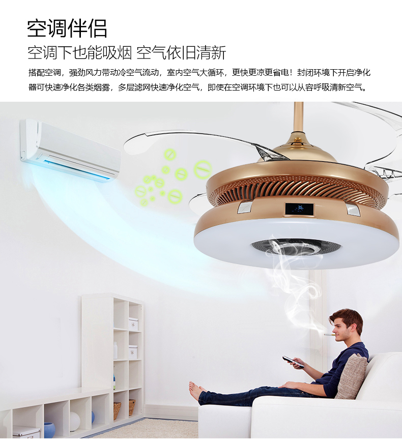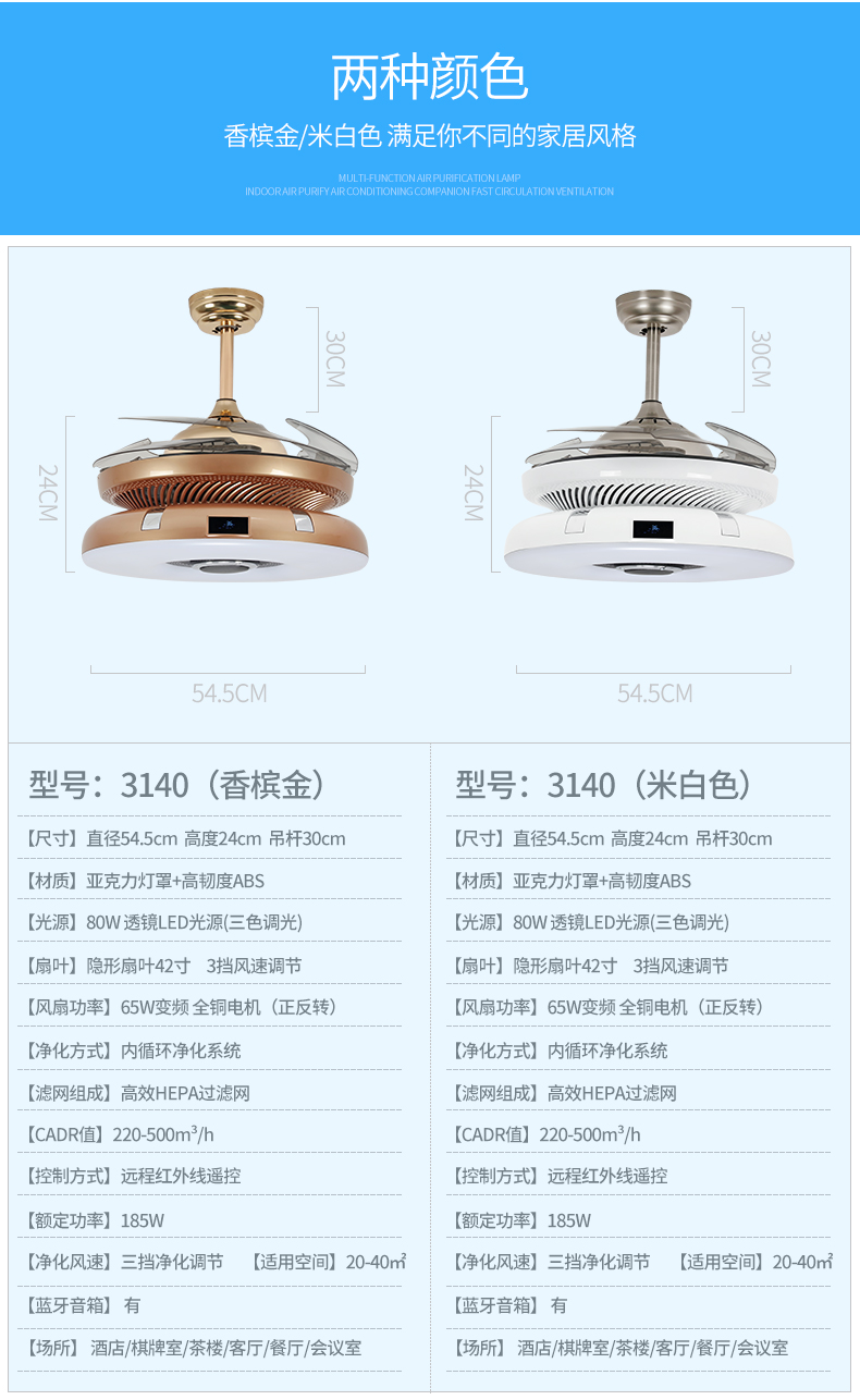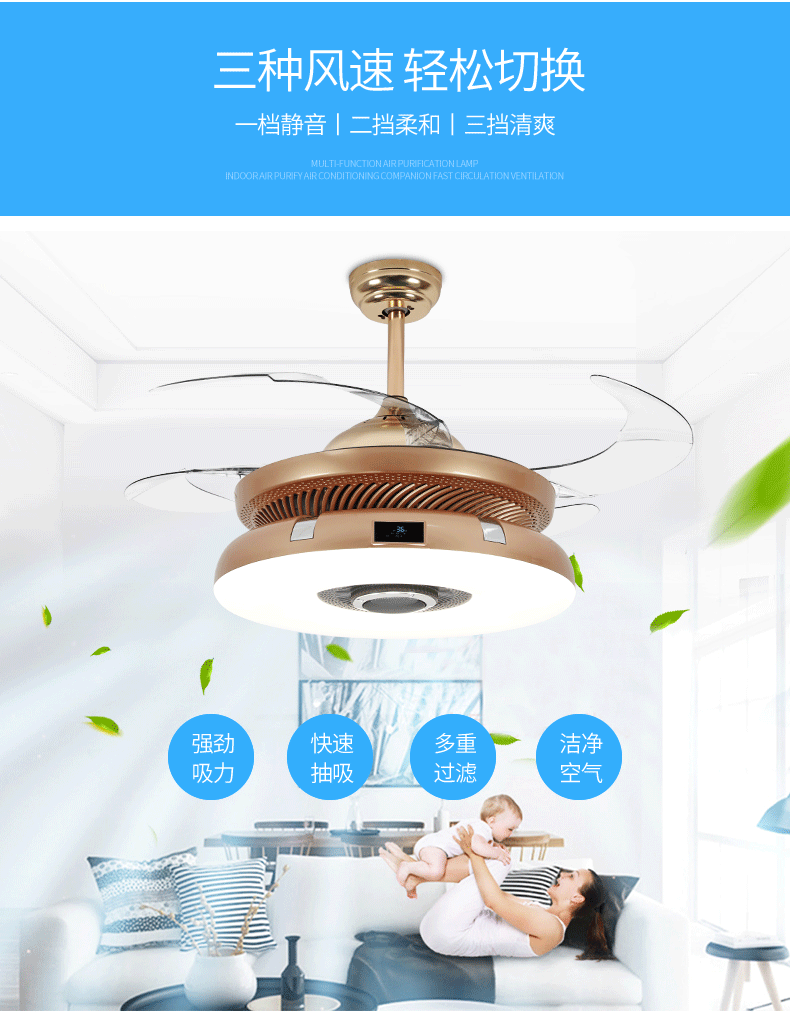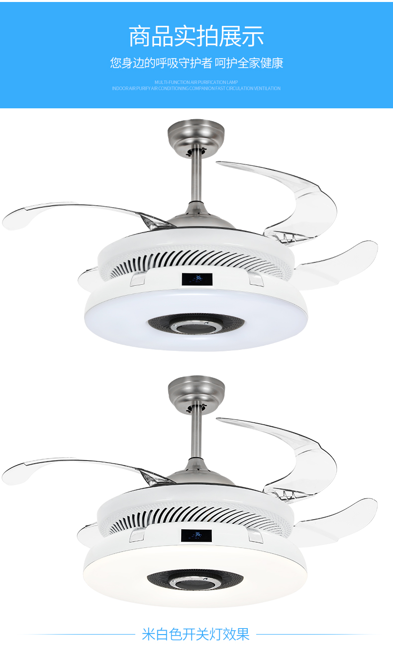 • 颜色分类:珍珠白净化风扇灯蓝牙音乐 香槟金净化风扇灯蓝牙音乐 珍珠白净化风扇灯蓝牙音乐+变频 香槟金净化风扇灯蓝牙音乐+变频