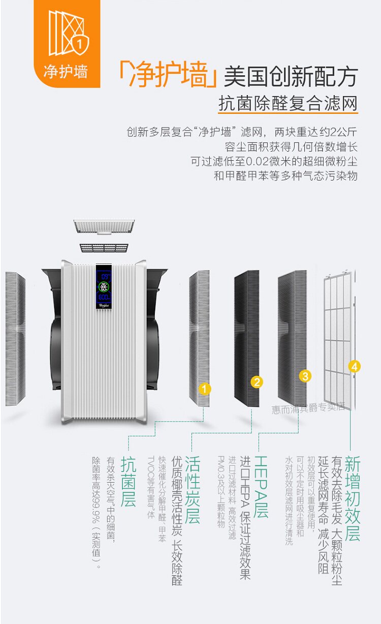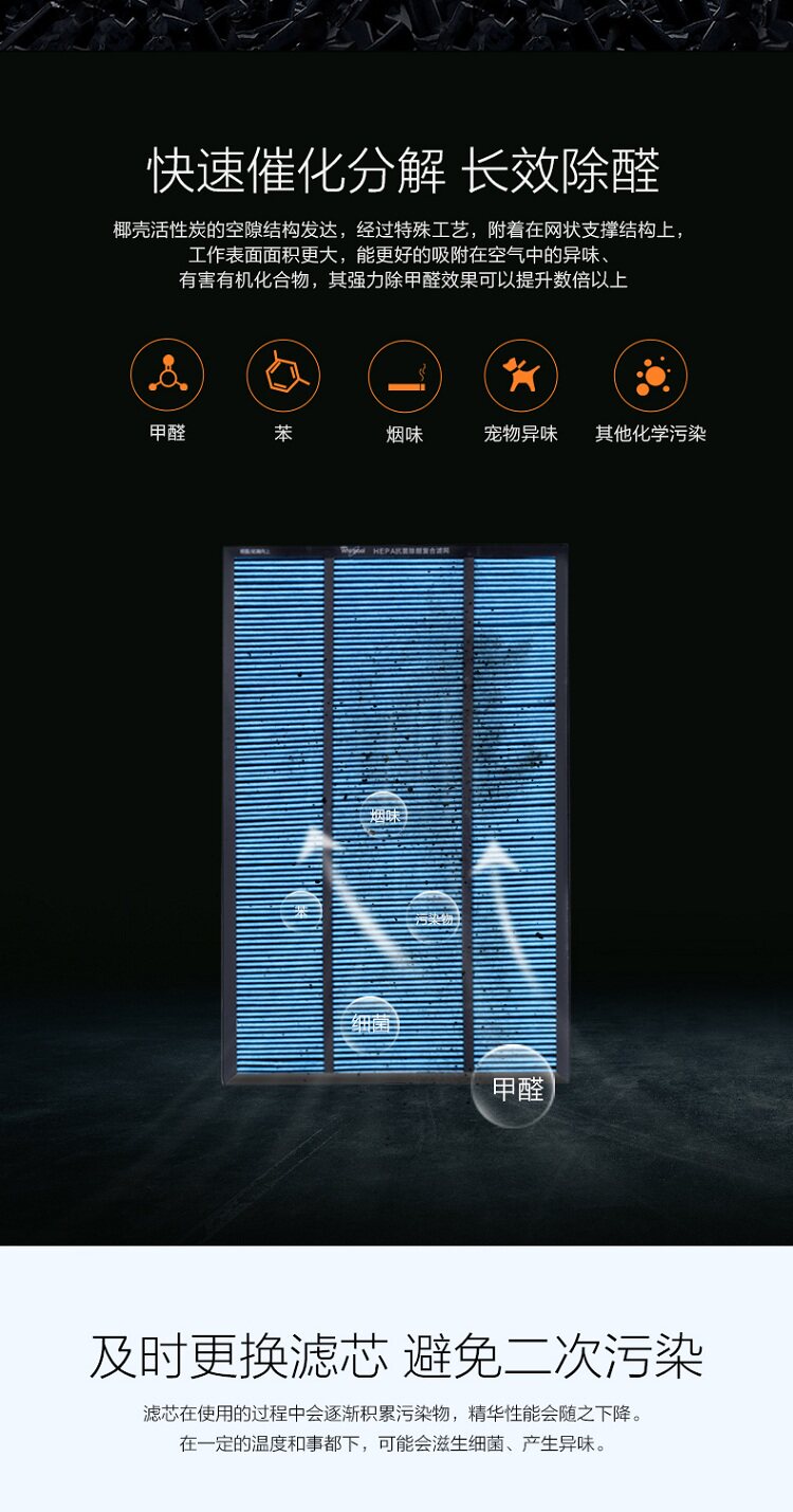 惠而浦WA-7001FK/7501FK空气净化器原装滤网除甲醛PM2.5滤芯