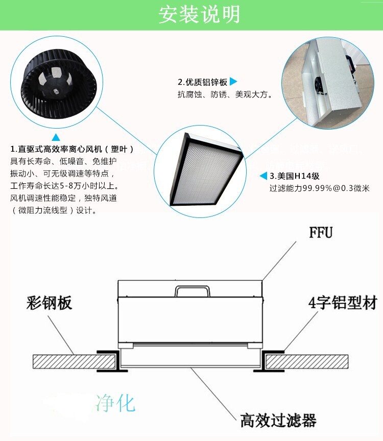 FFU空气过滤单元,层流罩广泛应用于百级无尘室光学行业,LCD液晶制造,生物实验室,手术室,精密仪器制造,PCB印刷等行业,晶圆加工业,食品加工业,半导体加工业,电子工厂、组培苗、食用菌、洁净室、贴合机(手机贴膜)等。