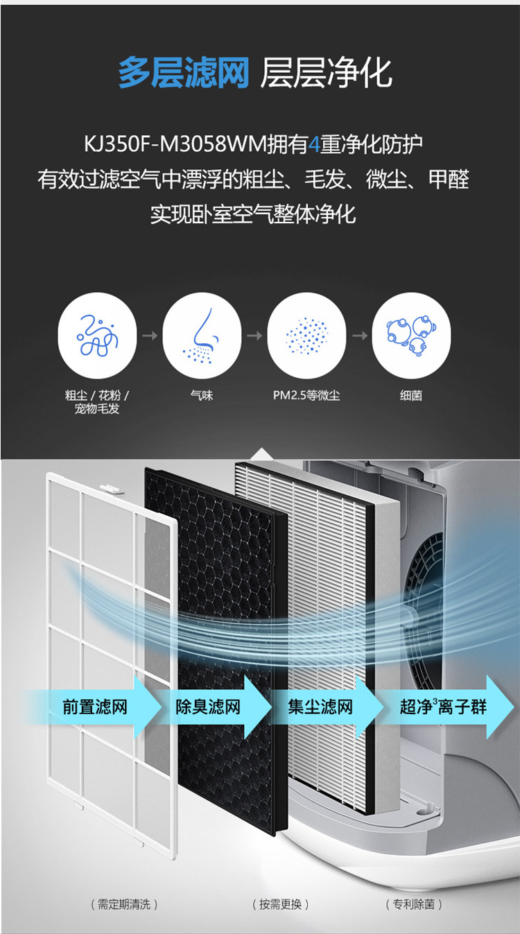 • 功能:定时 除花粉 除颗粒物 除甲醛 除烟除尘 除雾霾