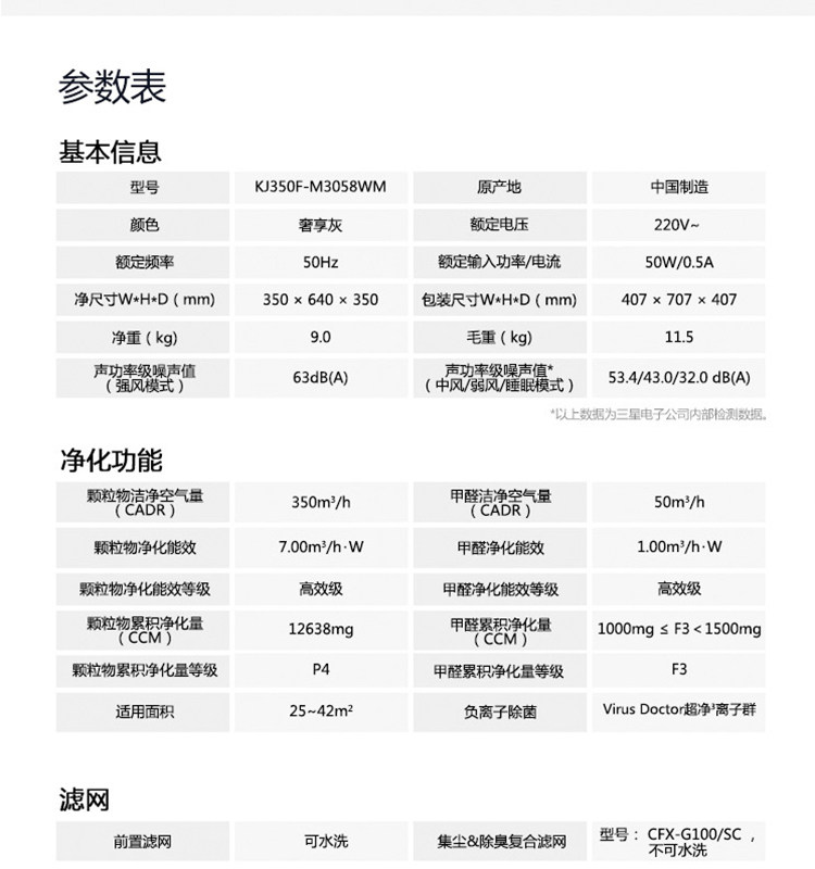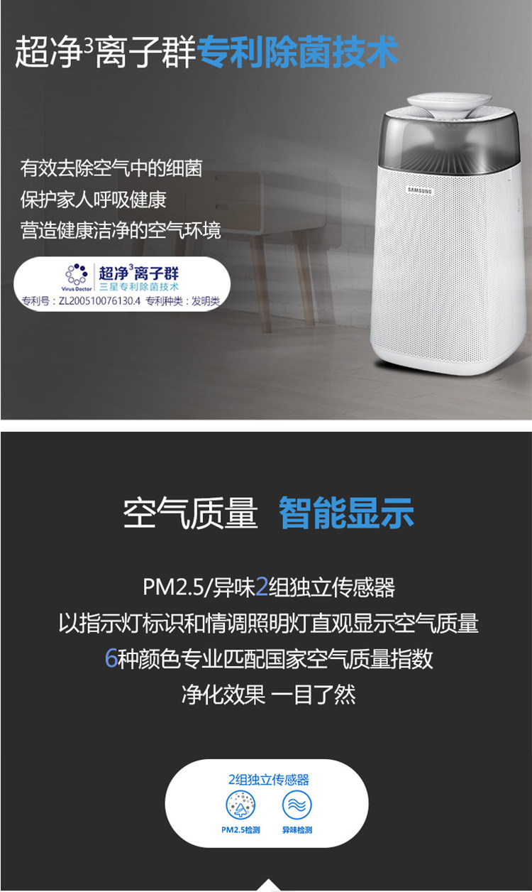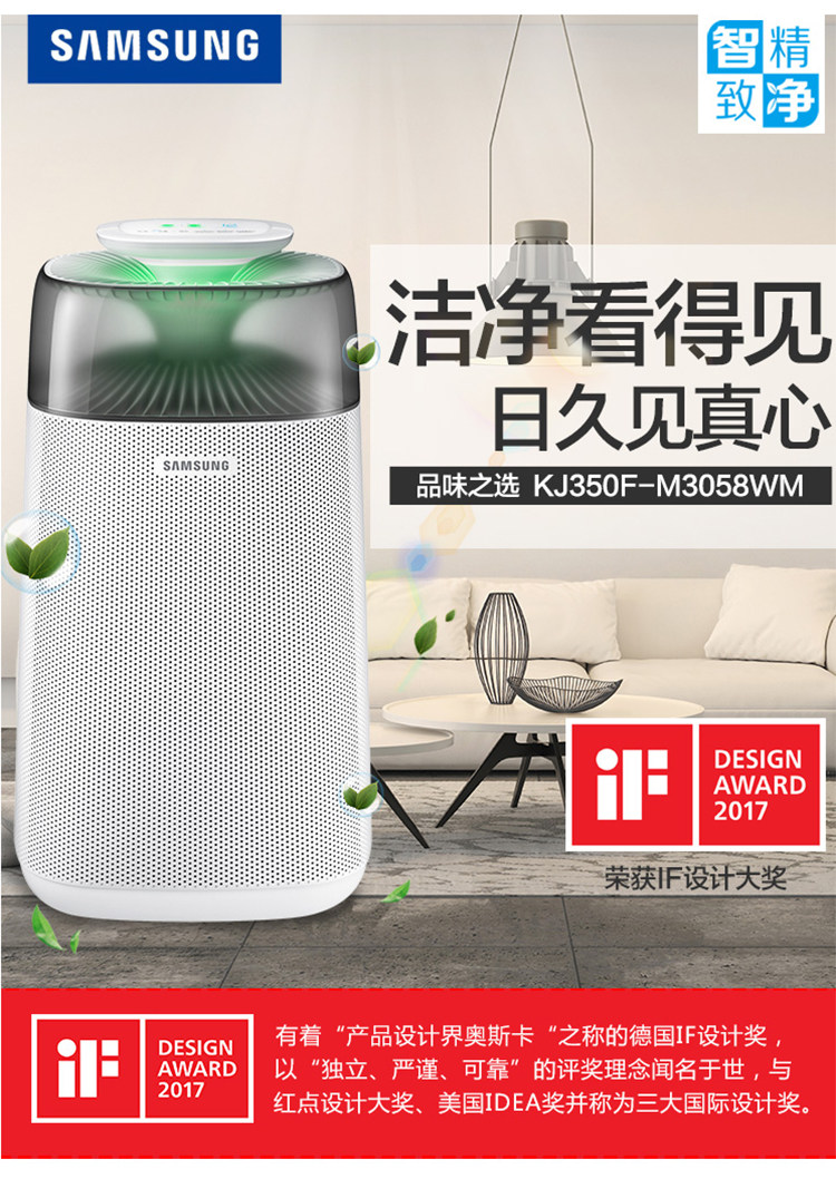 三星空气净化器KJ350F-M3058WM 家用卧室除雾霾甲醛PM2.5除烟除尘