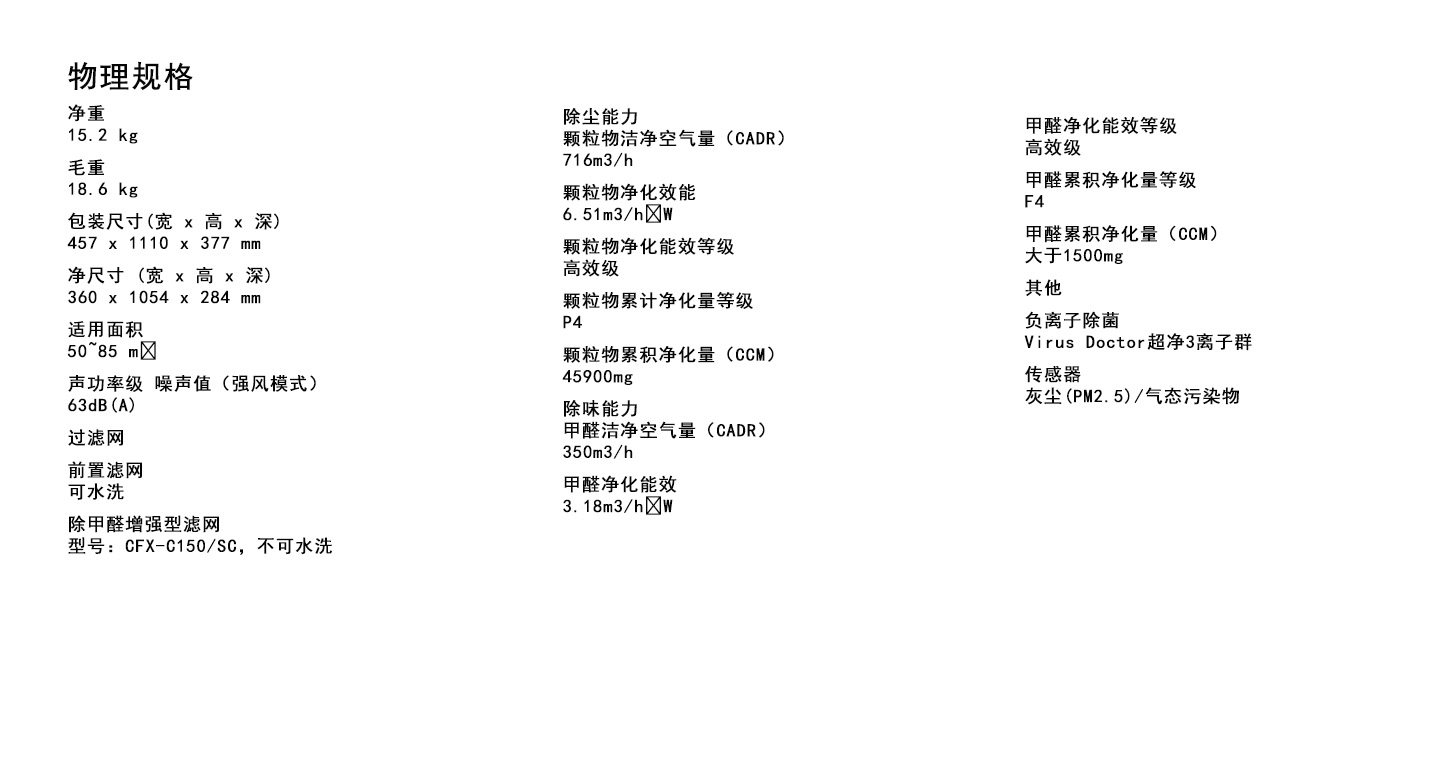 • 甲醛CADR值:350立方米/小时