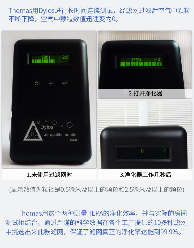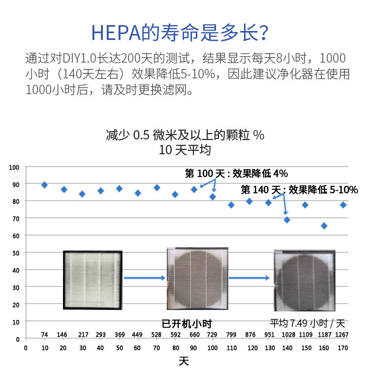 下面的图表示一片 HEPA 在北京5个星期的使用效果(一张代表一周的时间):