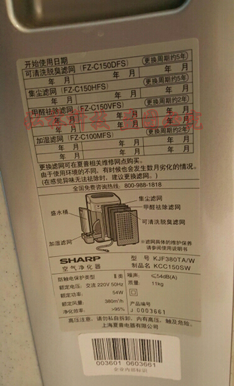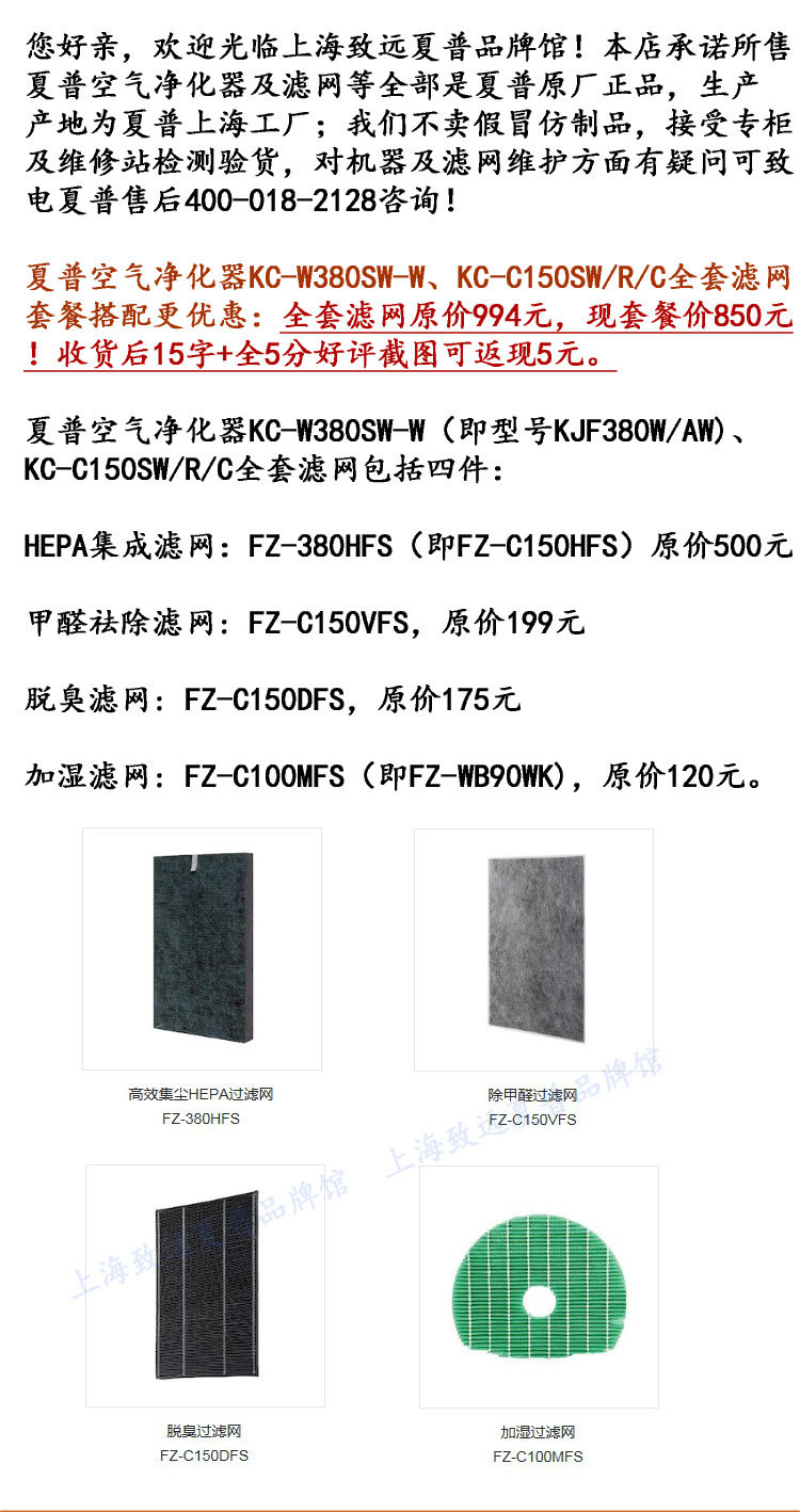 HEPA集成滤网:FZ-380HFS(即FZ-C150HFS二者同物不同名):
