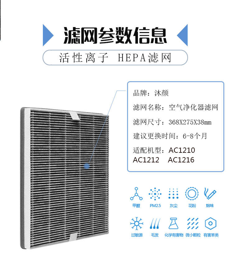 [净化器滤网耗材净化,加湿抽湿机配件]沐颜适配飞利浦空气净化器AC1210月销量28件仅售99元