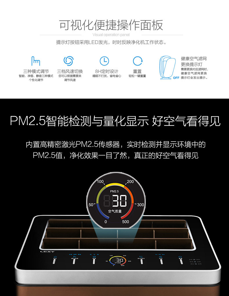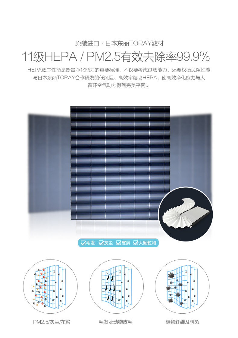 • 功能:除颗粒物 定时 除花粉 除VOC 除甲醛 除烟除尘 除雾霾