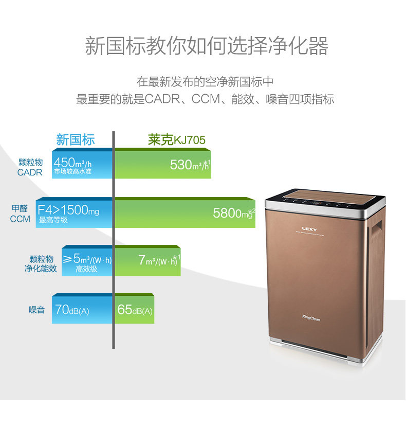 莱克大洁净空气量净化器KJ705除雾霾除甲醛抗过敏空气净化器PM2.5
