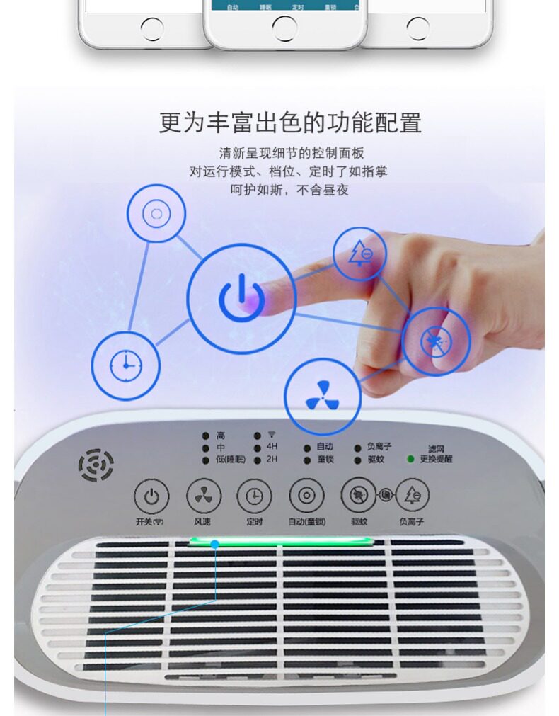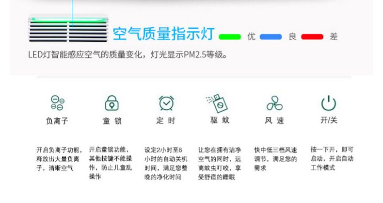 风力很大,指示灯很亮晚上可以当夜灯用,希望能降低家里的空气污染指数