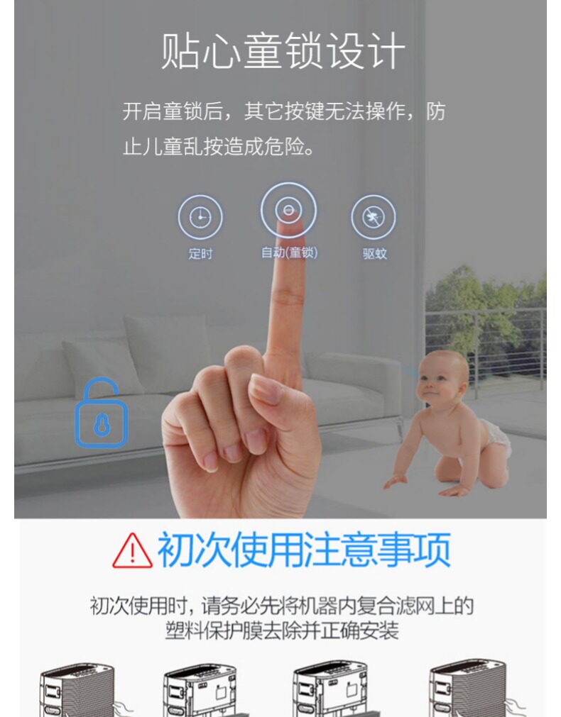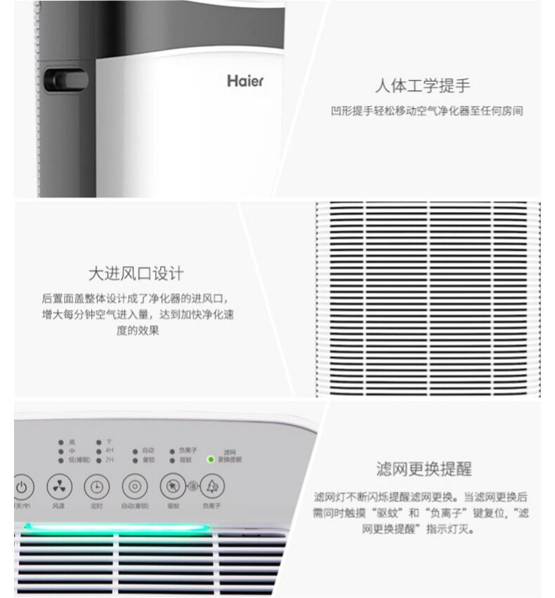 之前一直在犹豫买哪个品牌,朋友推荐海尔老牌子质量没的说物美价廉,真心好用,给宝宝一个舒适环境,值得推荐的一款,声音不大,空气明显清新,天然氧吧,发货及时。在家试用感觉不错的,科技感十足,价格便宜 服务挺好的
