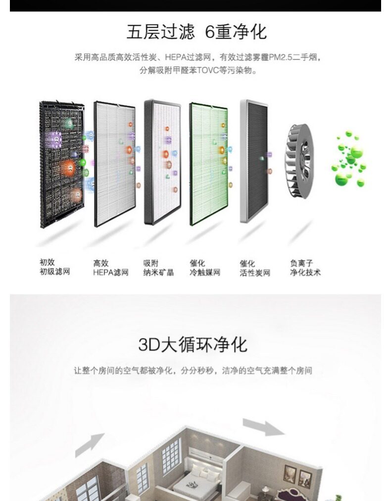 这个净化器效果挺好的,三档风速,负离子净化,多层物理过滤,冷触媒分解。无线智能遥控。适合房间或者客厅使用。比较明显的就是物理过滤能力很直观。