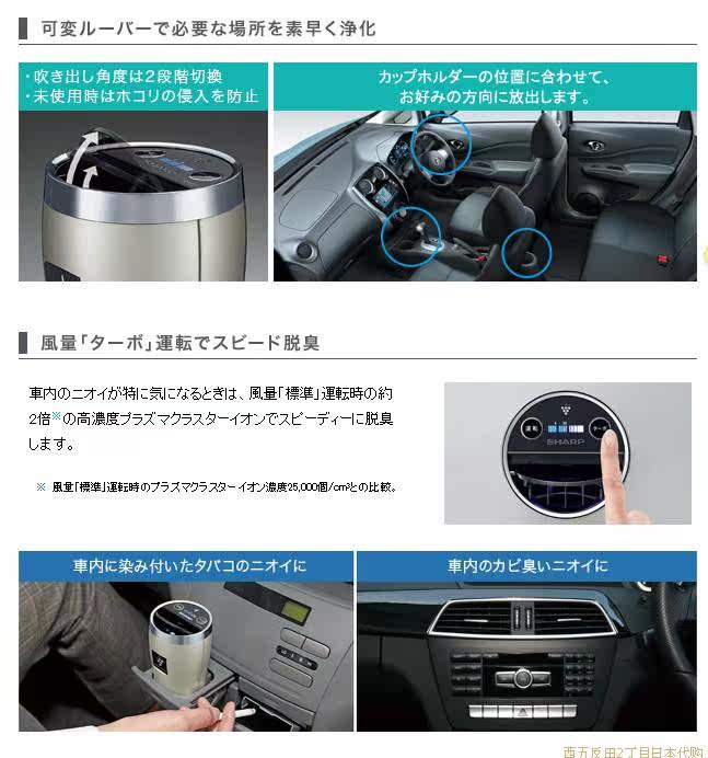 日本包邮直送【夏普】2013年第二代车载负离子发生器,净化空气,杀死空气中的浮游细菌病毒,消臭功能提高30%。释放离子,保护皮肤。配备车载电源插头。