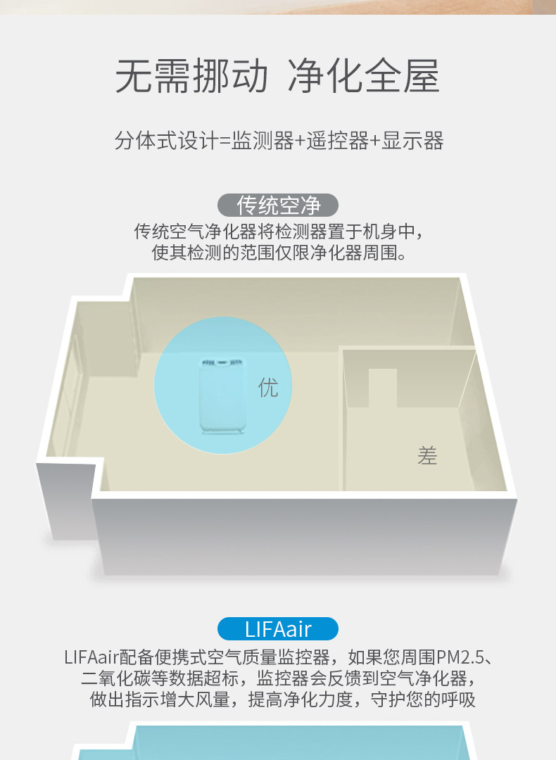 物流很快,包装非常厚实。昨天收到试用了一晚上,效果可以,能明显感觉到卧室空气和客厅空气的差异,闻惯了不新鲜的密闭卧室的空气,都有点不适应那种特别清新的感觉了。监测器和净化器工作时稍有声音,但可以接受,不影响睡眠。几千块的东西,希望能用久点。