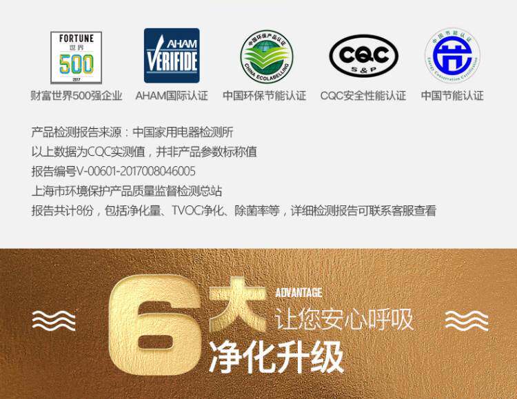 • 空气净化器风量:301-400立方米/小时