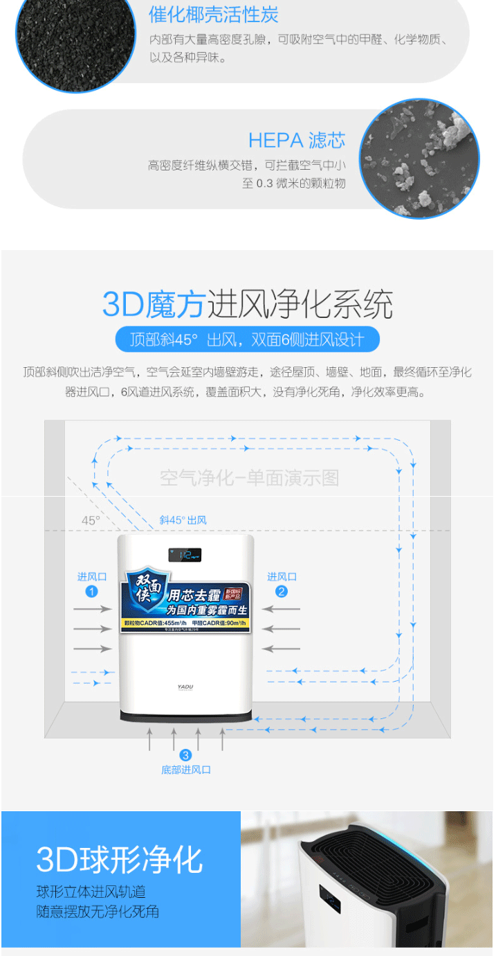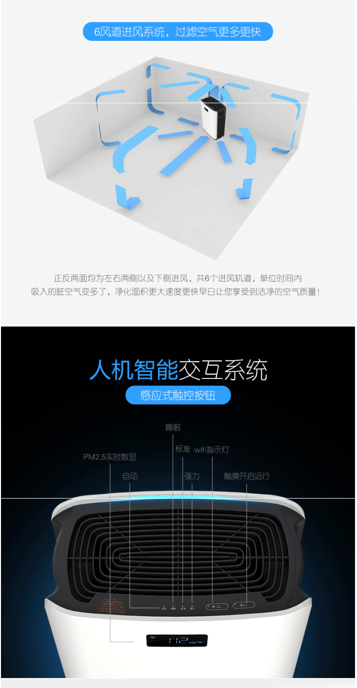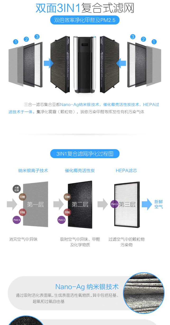 • 功能:除花粉除颗粒物除甲醛除烟除尘杀菌