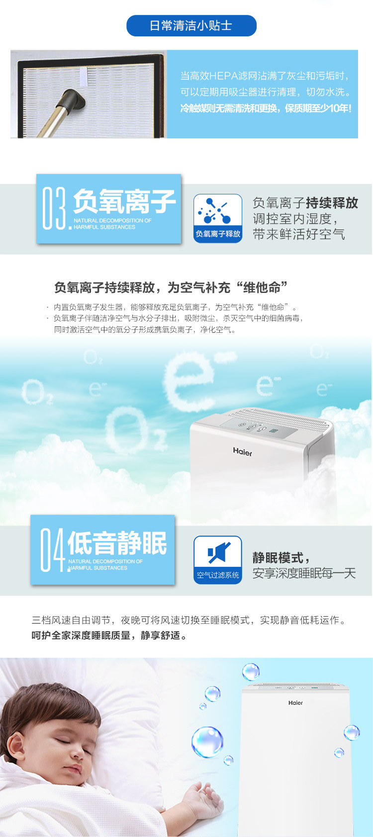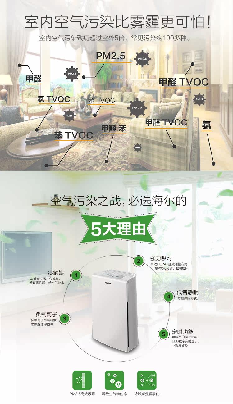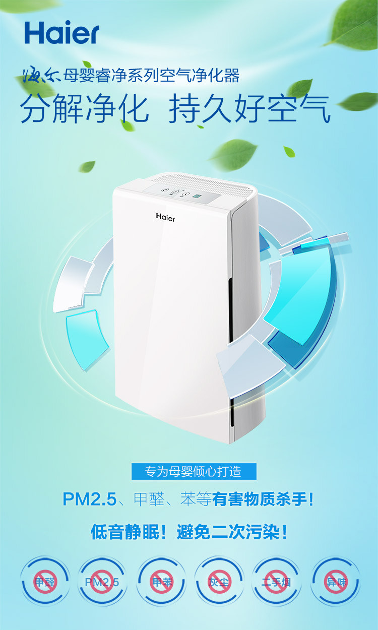 [海尔家电正品商城空气净化,氧吧]海尔母婴空气净化器KJ160F-HY月销量1件仅售899元