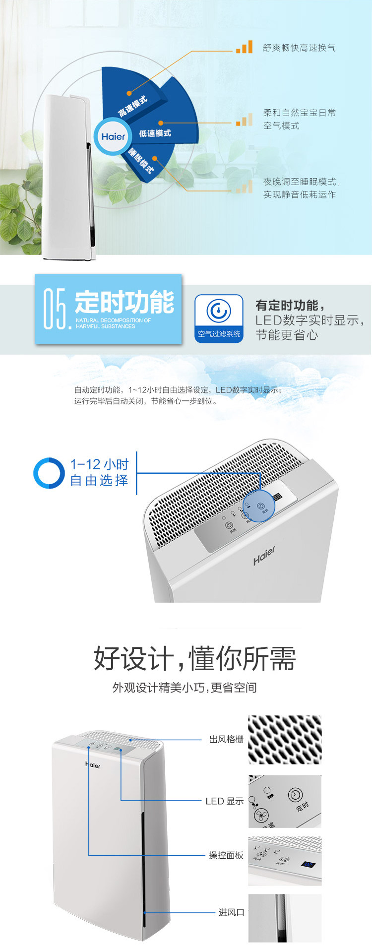 • 功能:定时 除颗粒物 除甲醛 除烟除尘 除雾霾 除菌, 负离子 除菌