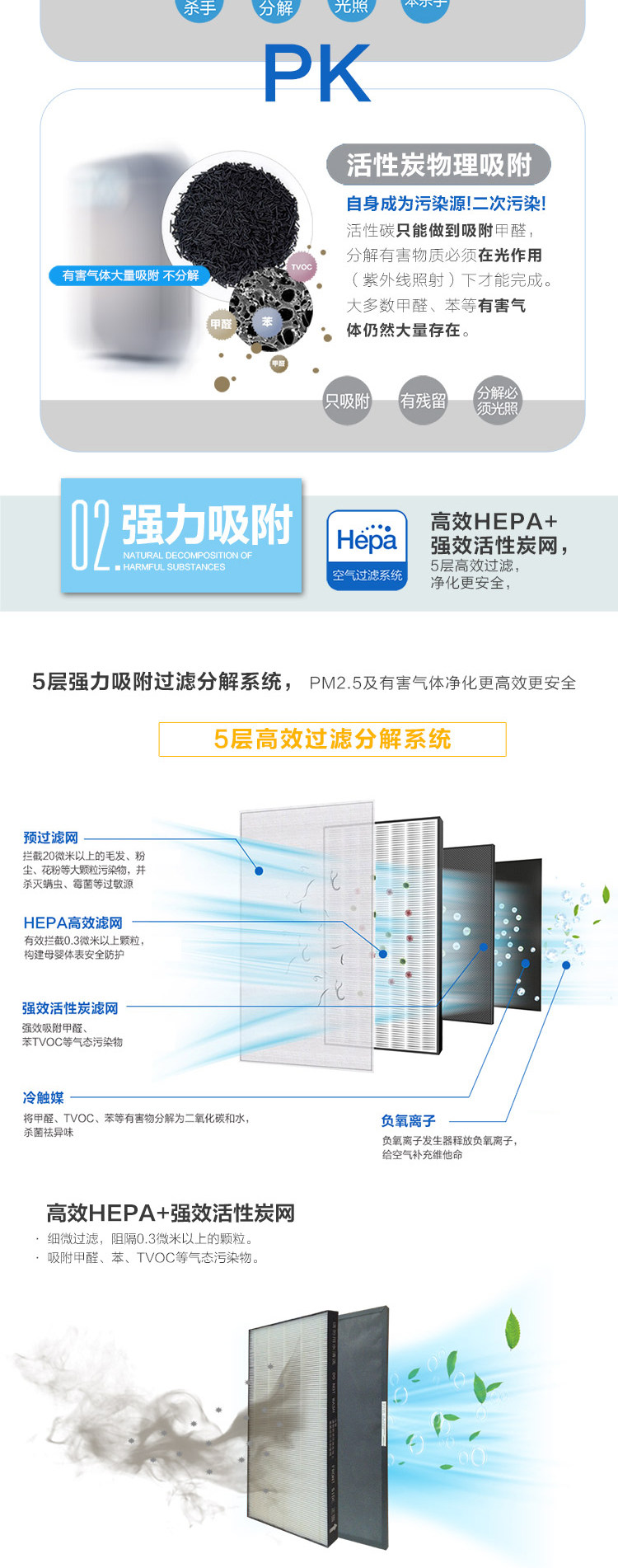 • 工作原理:活性炭 负离子 HEPA技术
