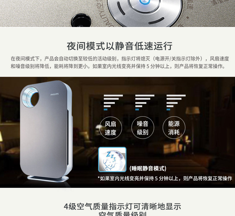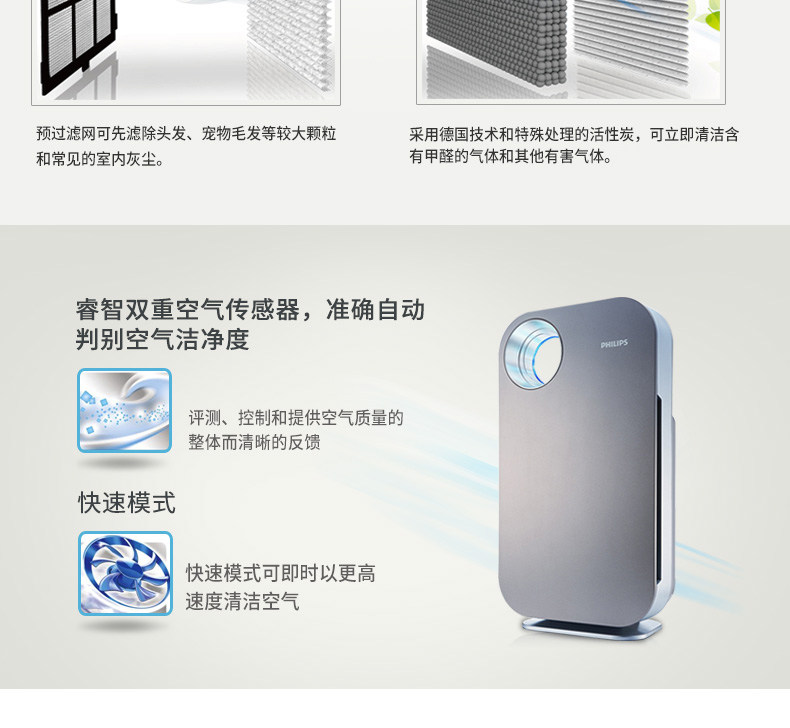[京创电器专营店空气净化,氧吧]飞利浦空气净化器AC4074家用静音月销量1件仅售1999元