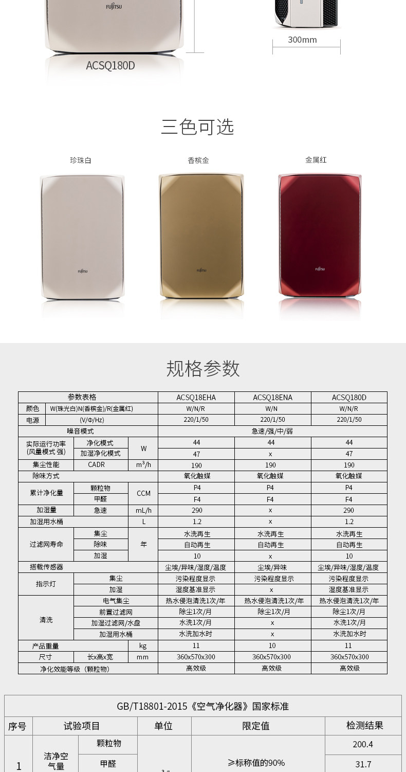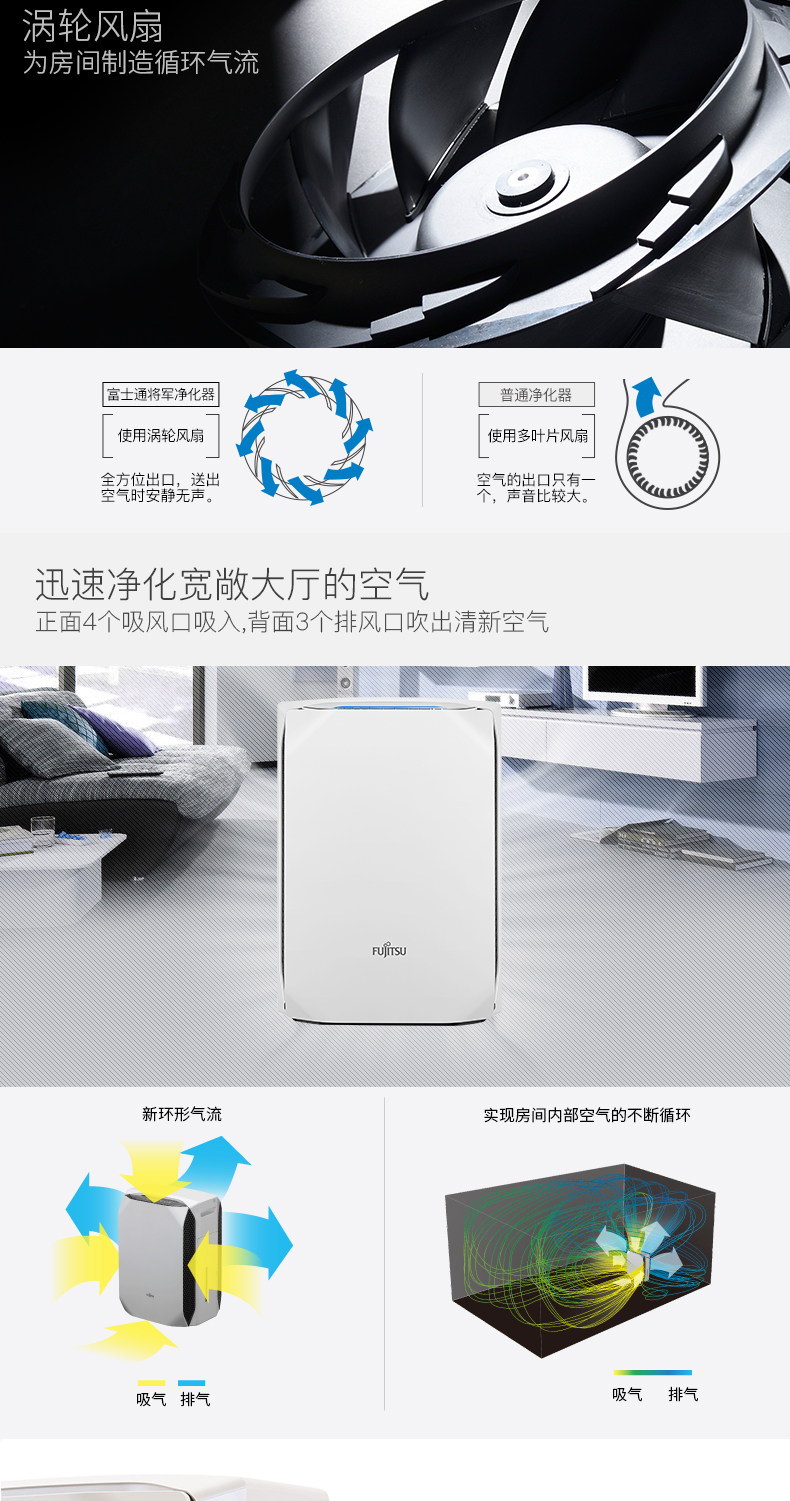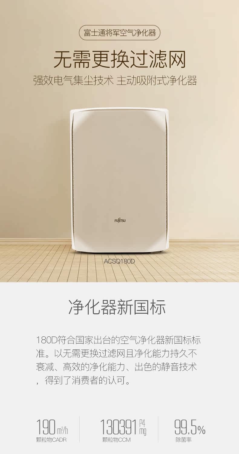 [富士通家电官方旗舰店空气净化,氧吧]富士通将军空气净化器180D家用加湿月销量1件仅售3099元