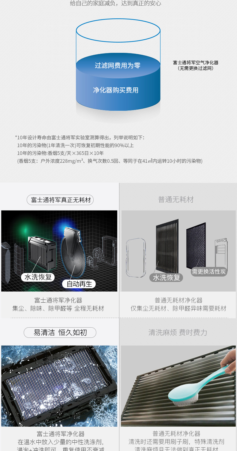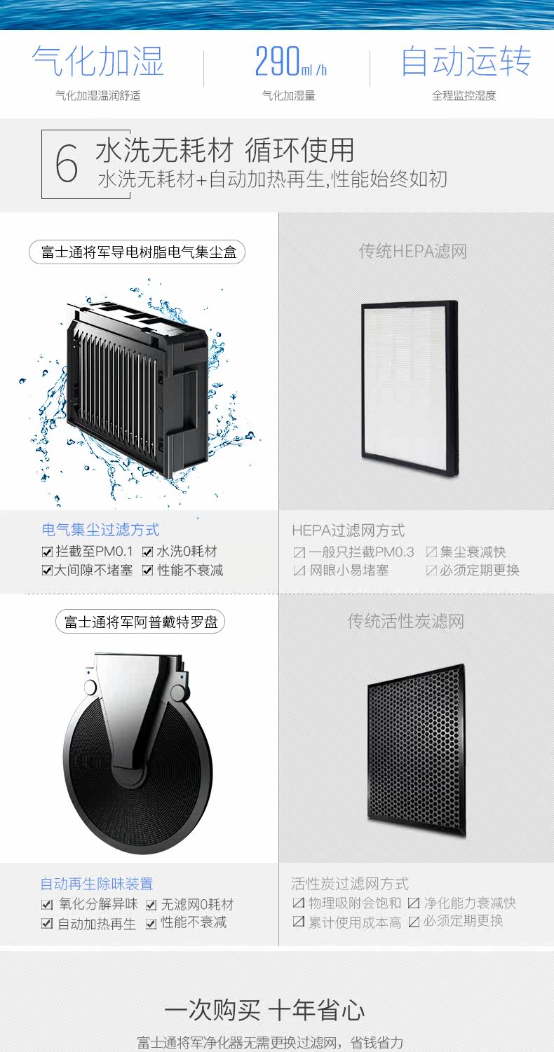 富士通将军空气净化器180D家用加湿无耗材氧吧杀菌除甲醛PM2.5