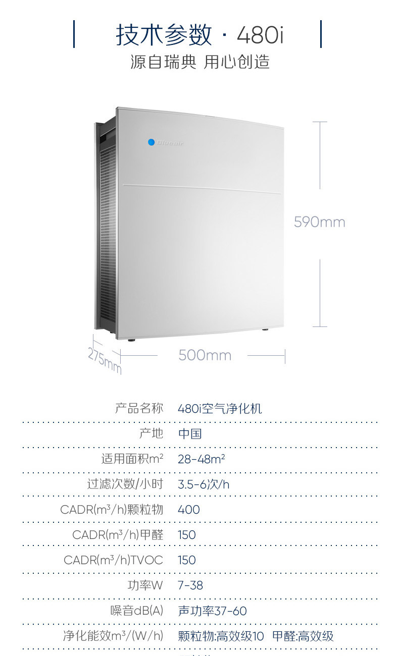• 产品名称:BLUEAIR/布鲁雅尔 480i