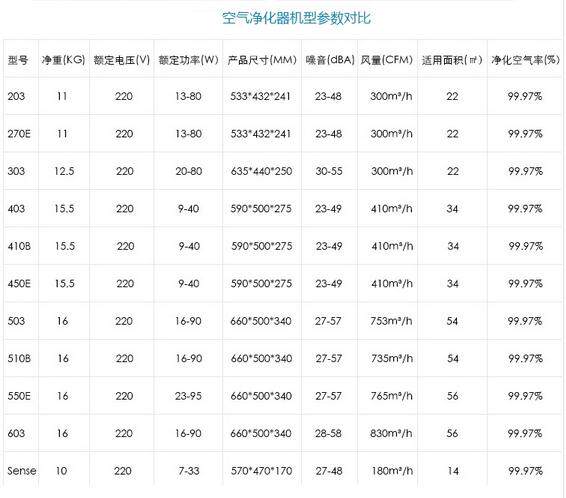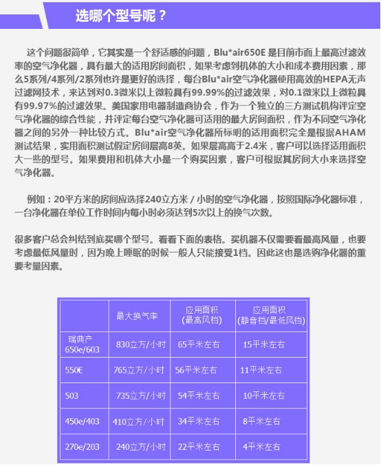 1.Blueair不同型号之间的区别主要在于
