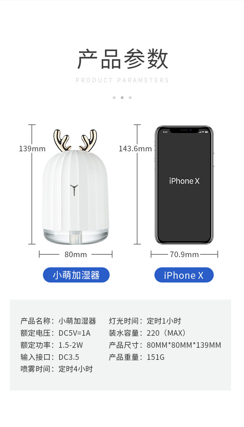 小小的加湿器娇巧可爱,而且灯光很炫丽,值得购买!